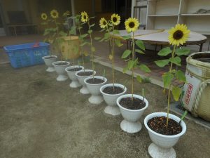 “自分”のひまわりを育てることを通して、植物に興味関心を持つことは勿論、お世話をすることも経験できた子ども達…その中で沢山の『発見・気づき』を与えてくれたひまわりともう少し一緒に過ごし、『種取り』も経験できたら・・・その種が来年につながったら・・・と願っています。