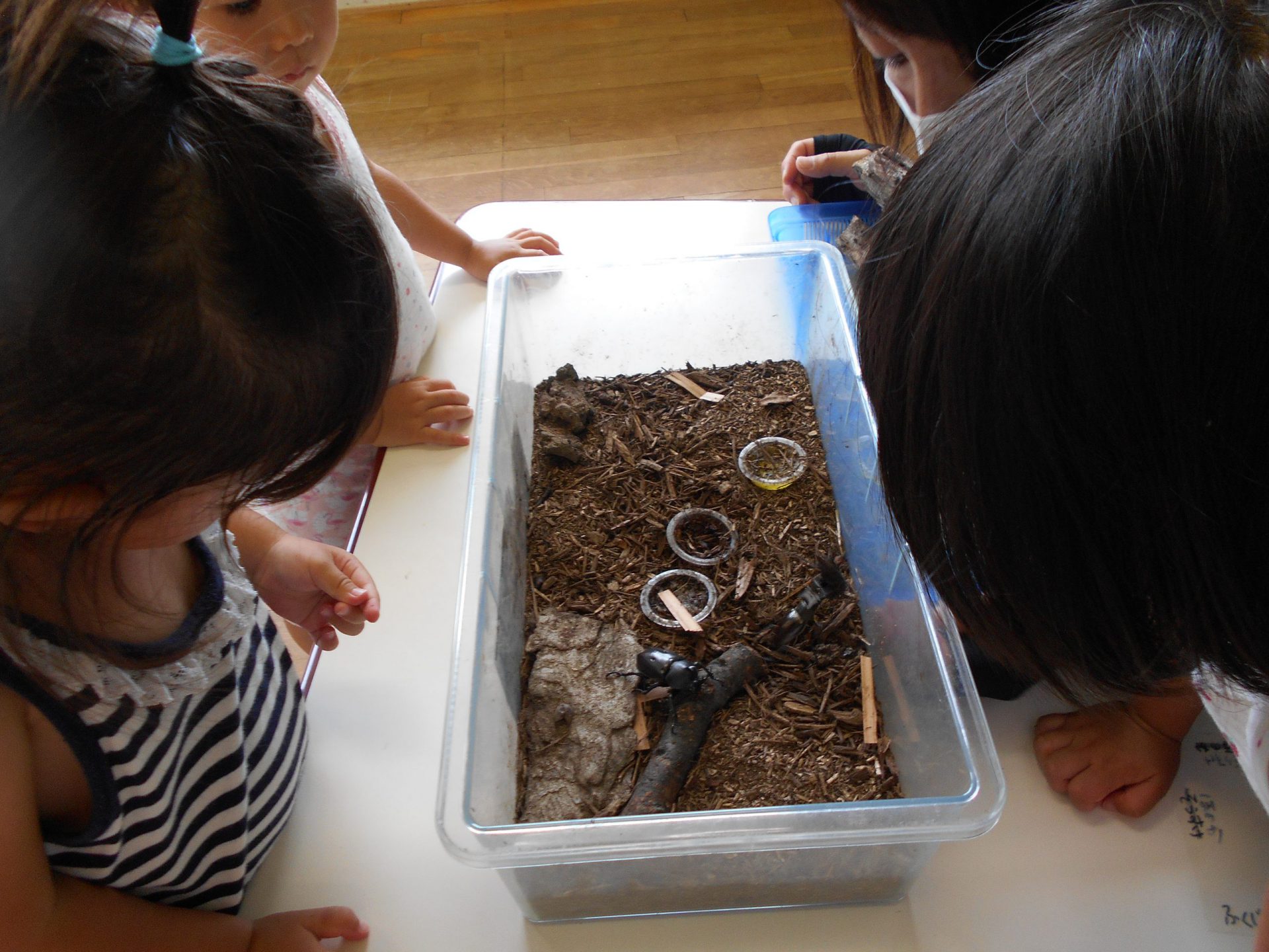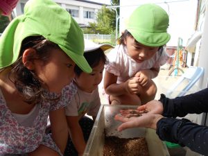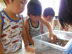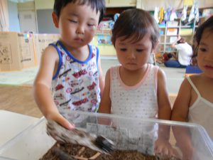 園の子ども達みんなで、いろいろな昆虫を観察しています。