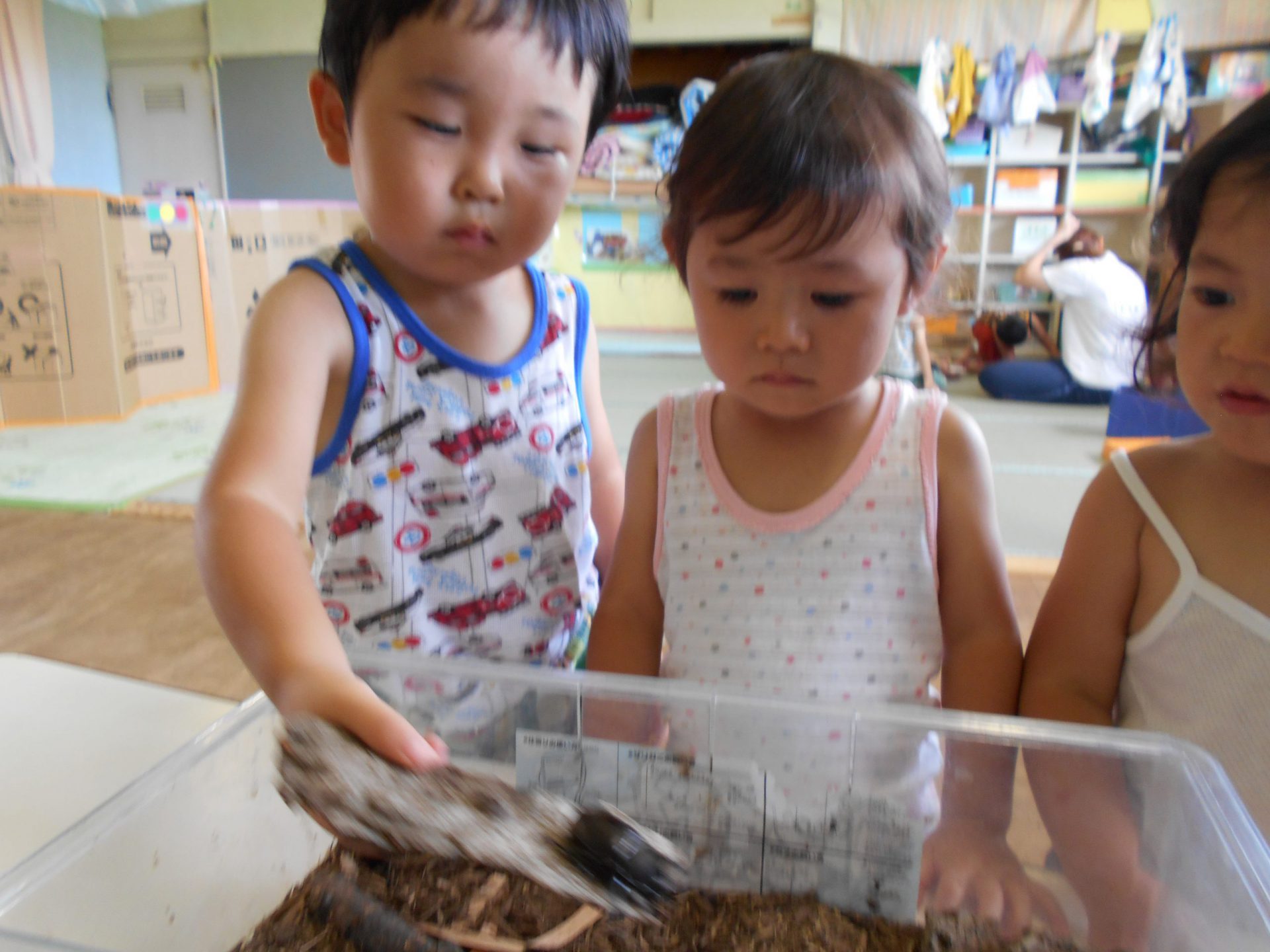 年長さんのお部屋では、カブトムシが卵を産みました。