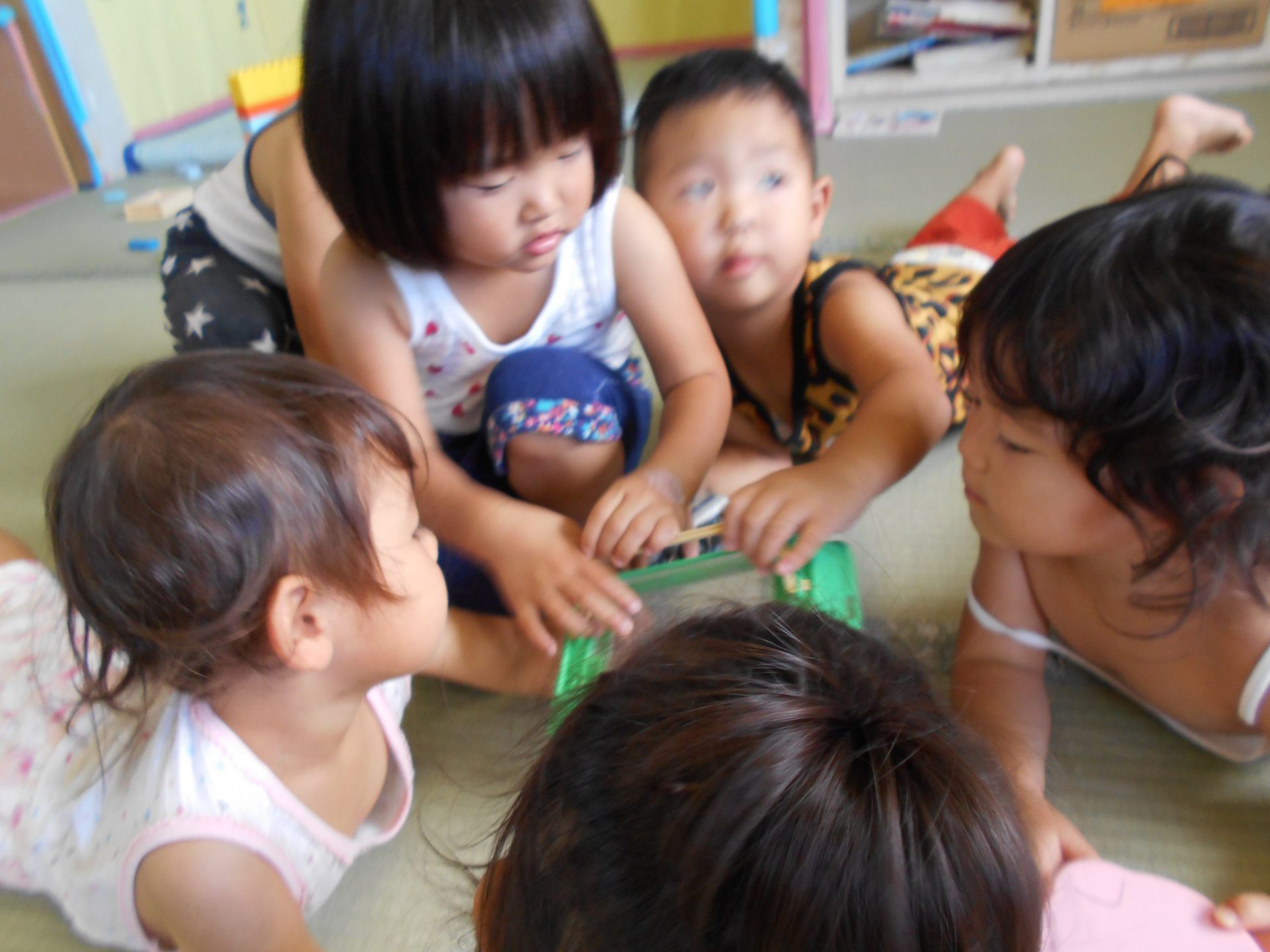 ただいま「みせてよ~」と虫かごの取り合い中です。