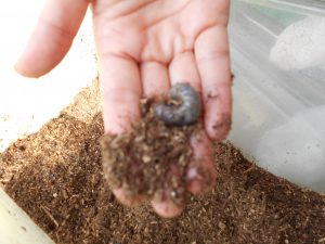 産まれたらカブトムシの幼虫は、こんなに大きくなりました。