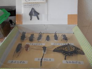 年少さんと年中さんのクラスには、先生が作った昆虫の標本があります。