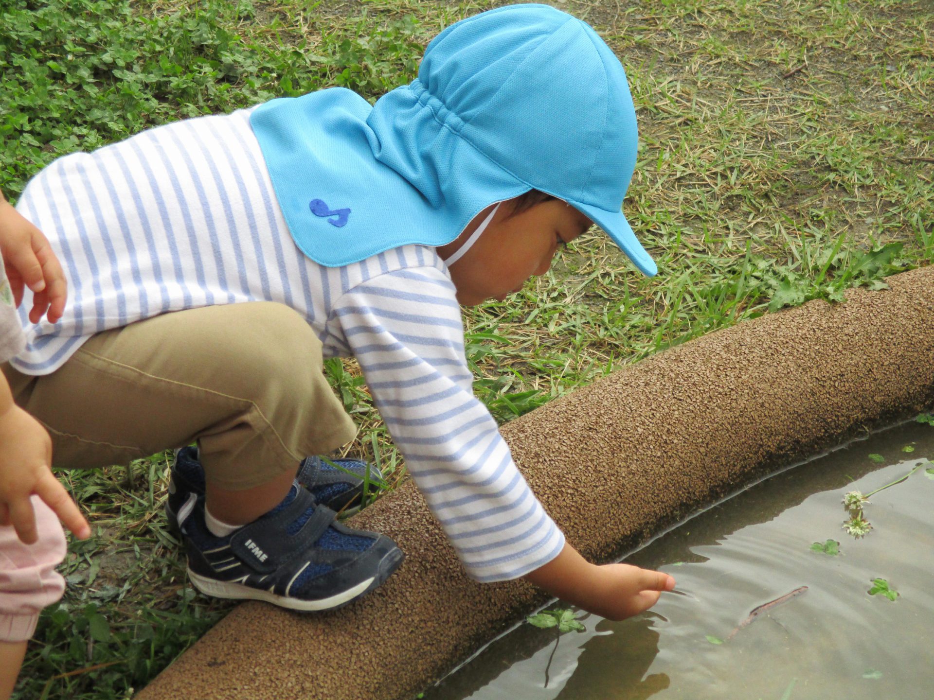 「こっちにもおいでー」とカエルを見つけ呼んでいました。