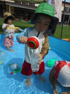 思い思いの遊びを楽しむうちに、お水とすっかりお友だちになりました。