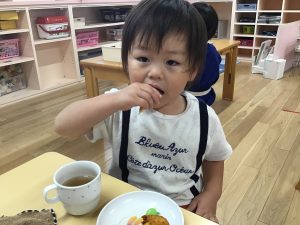 〇いちじくの観察・収穫という貴重な経験を通して、自然の恵みや旬を感じることができる。季節の果物や野菜など、保育士からの情報発信も必要である。また、その時々で子どもたちの興味・関心が膨らむように、見近な場所に絵本や図鑑を用意した。更なる環境設定を工夫していきたい。