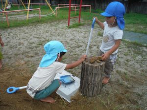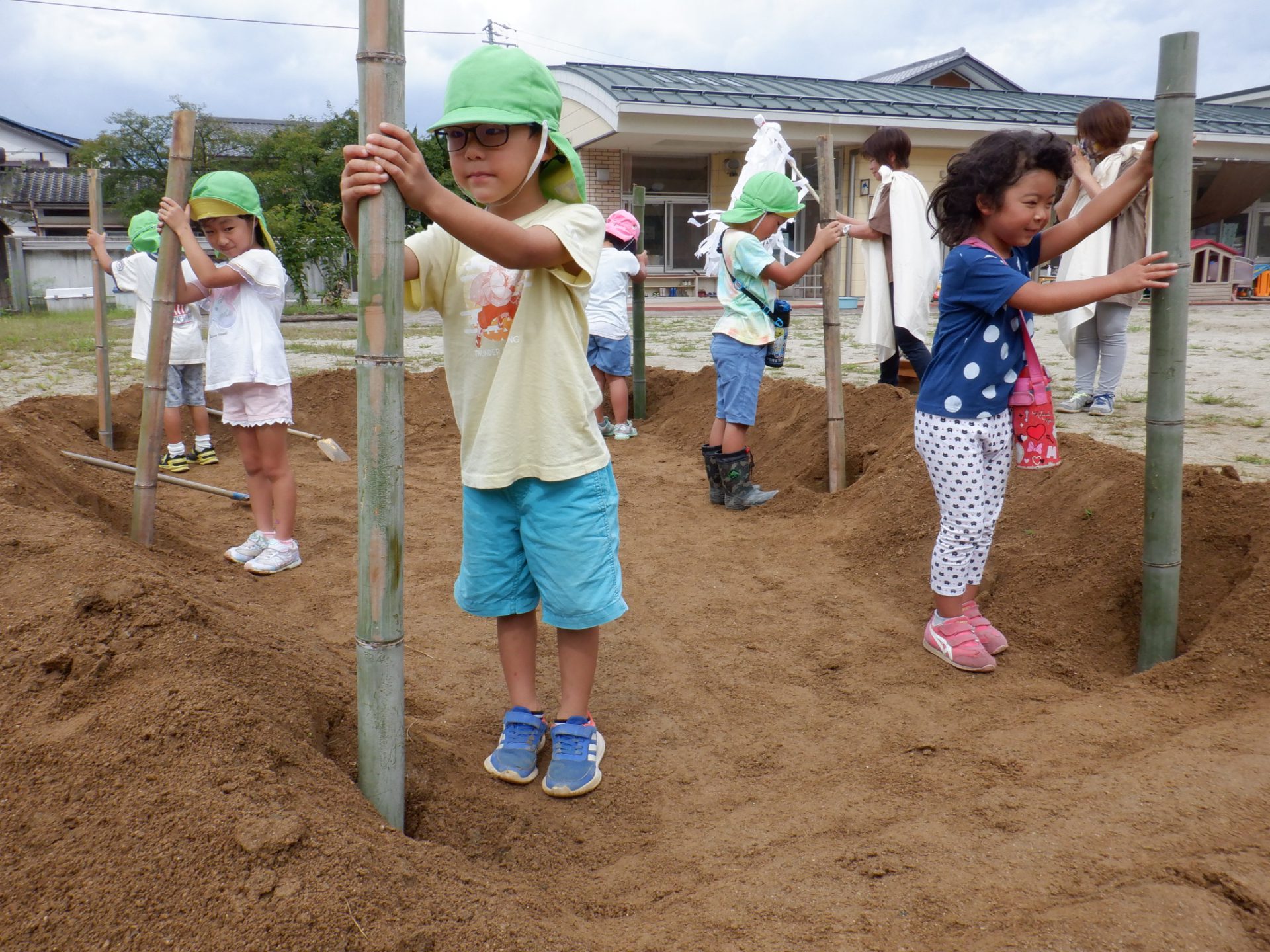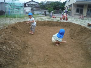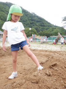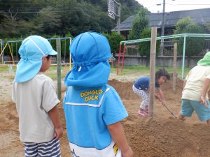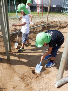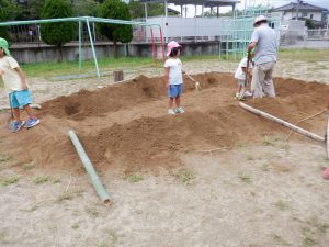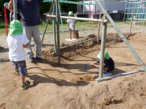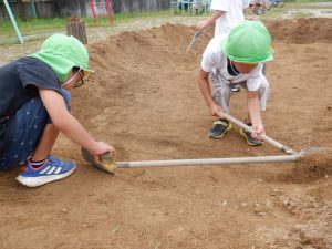 毎日少しずつ少しずつ穴を掘り進めていく年長の子ども達。