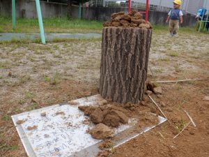ぐらぐらしないよう、しっかりと土で埋めます。