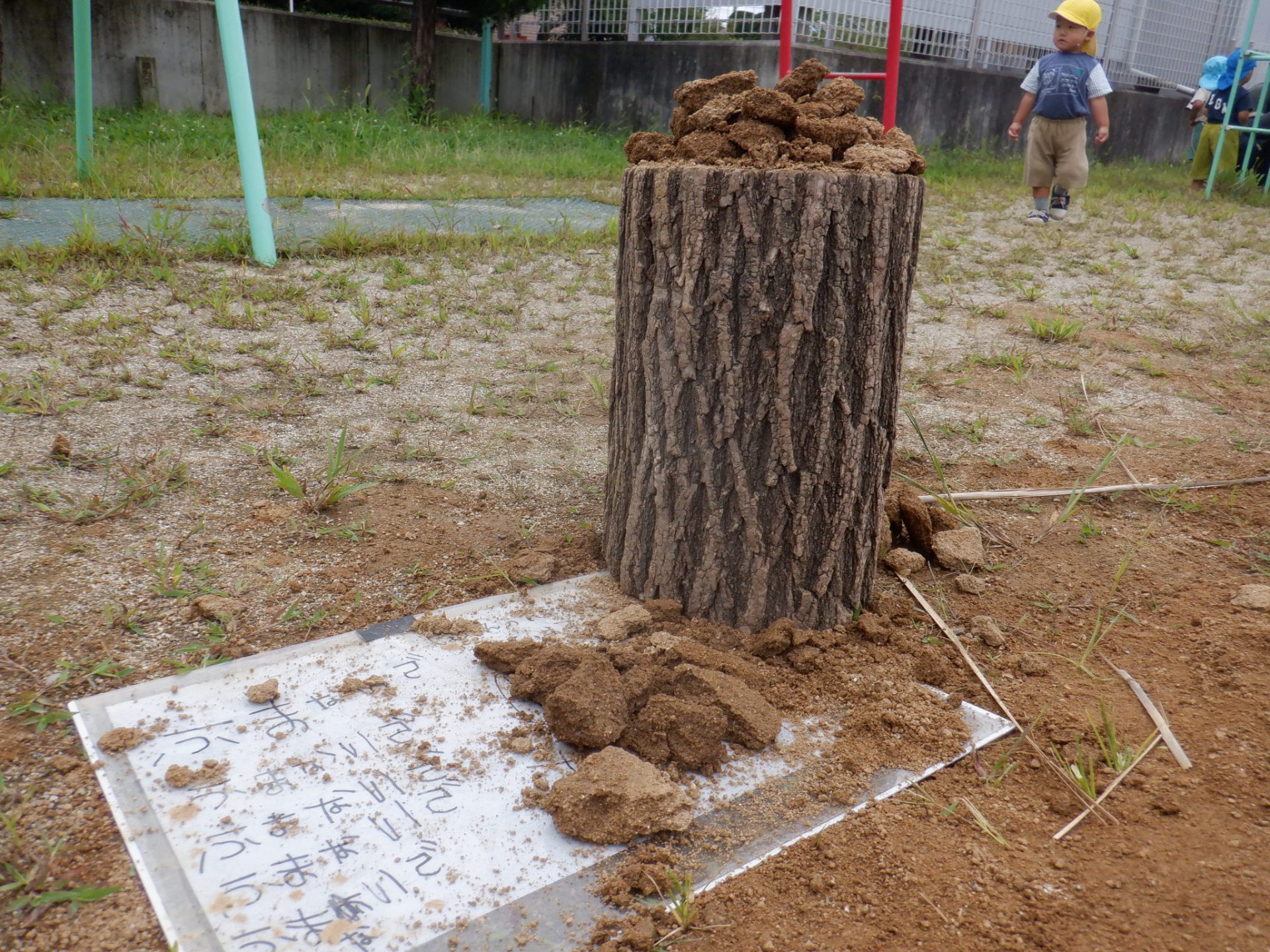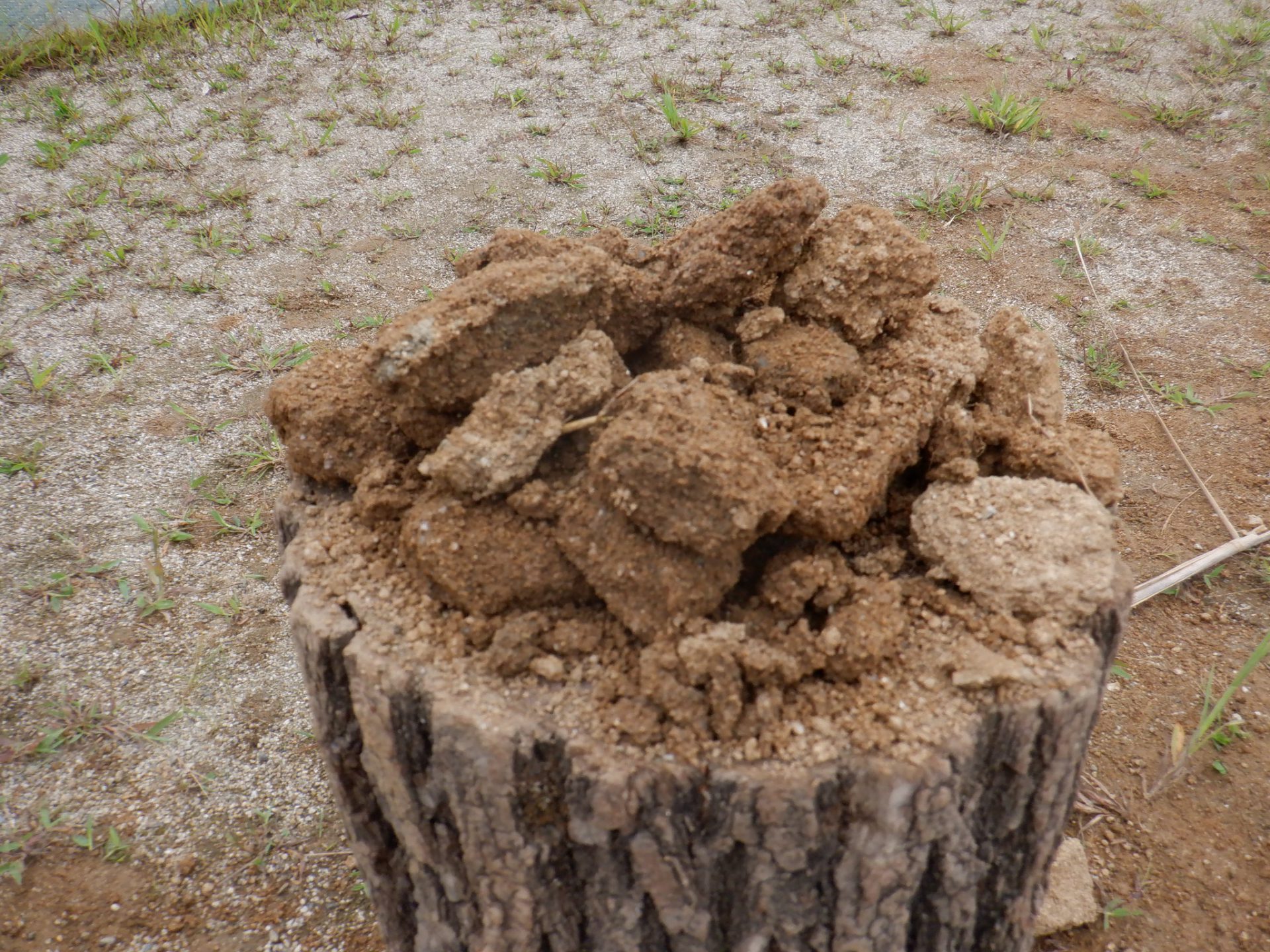 丸太の上にたくさんの土が!!