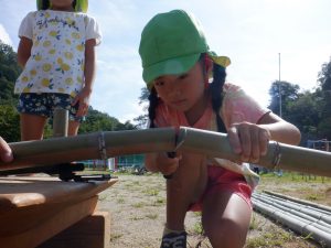 そんな年長さんの姿に興味関心を持って集まってくる小さい組さんの子ども達。