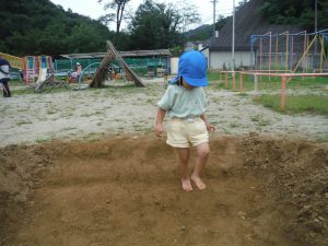 「くつに土が入った~」