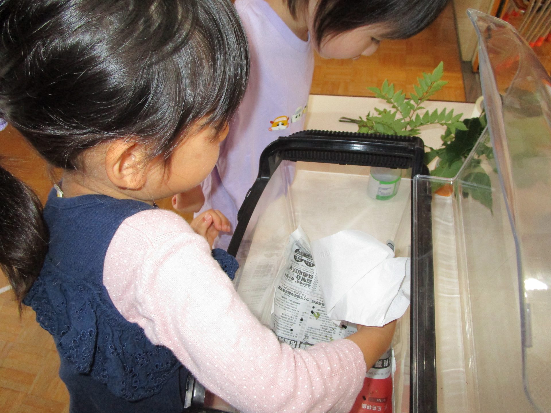 「昨日はさなぎになるための準備をしてたのかあ!」と、前日の様子と結びづけて考える子もいました。