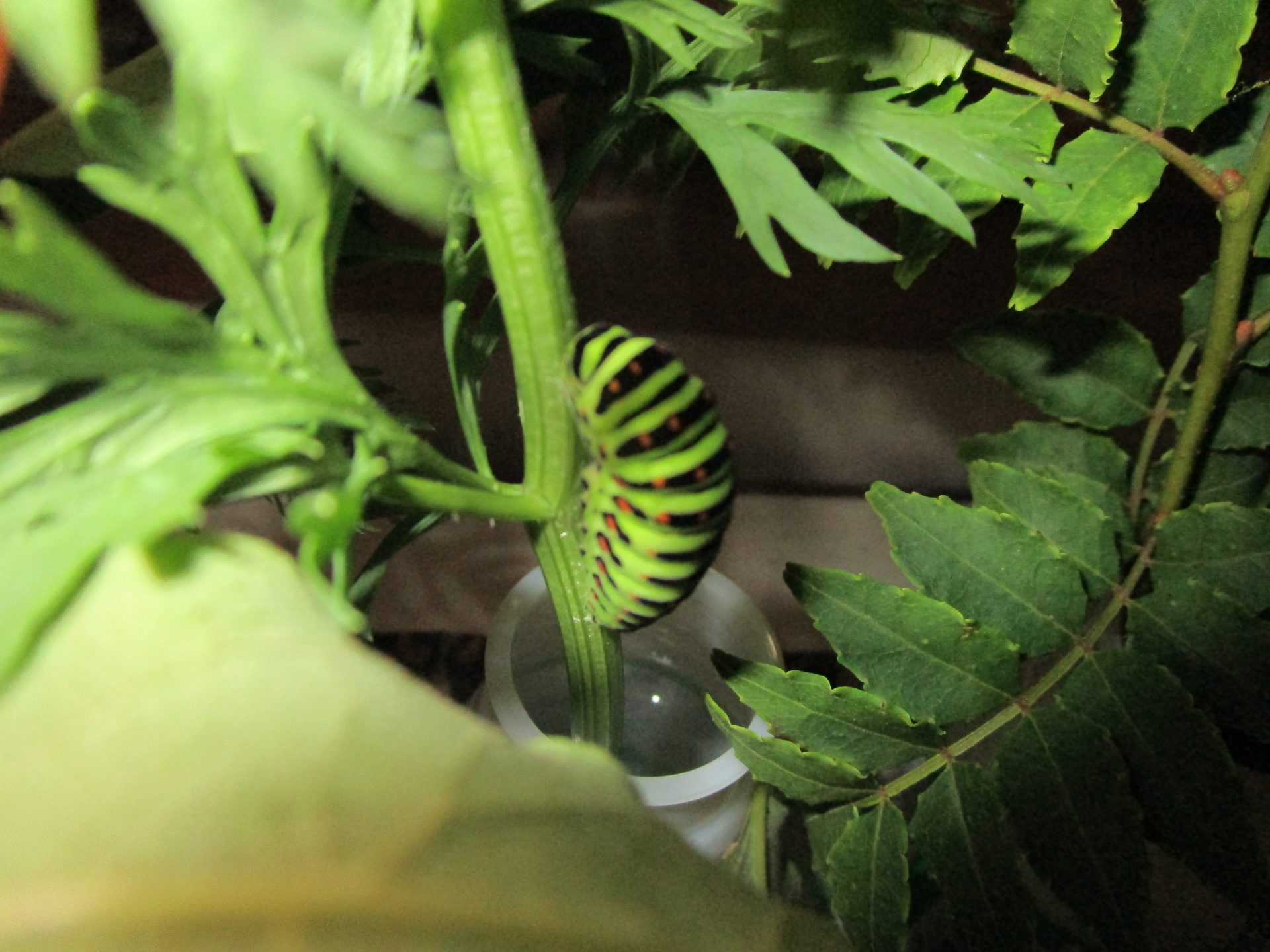 幼虫がにんじんの葉っぱをもりもり食べていると・・・
