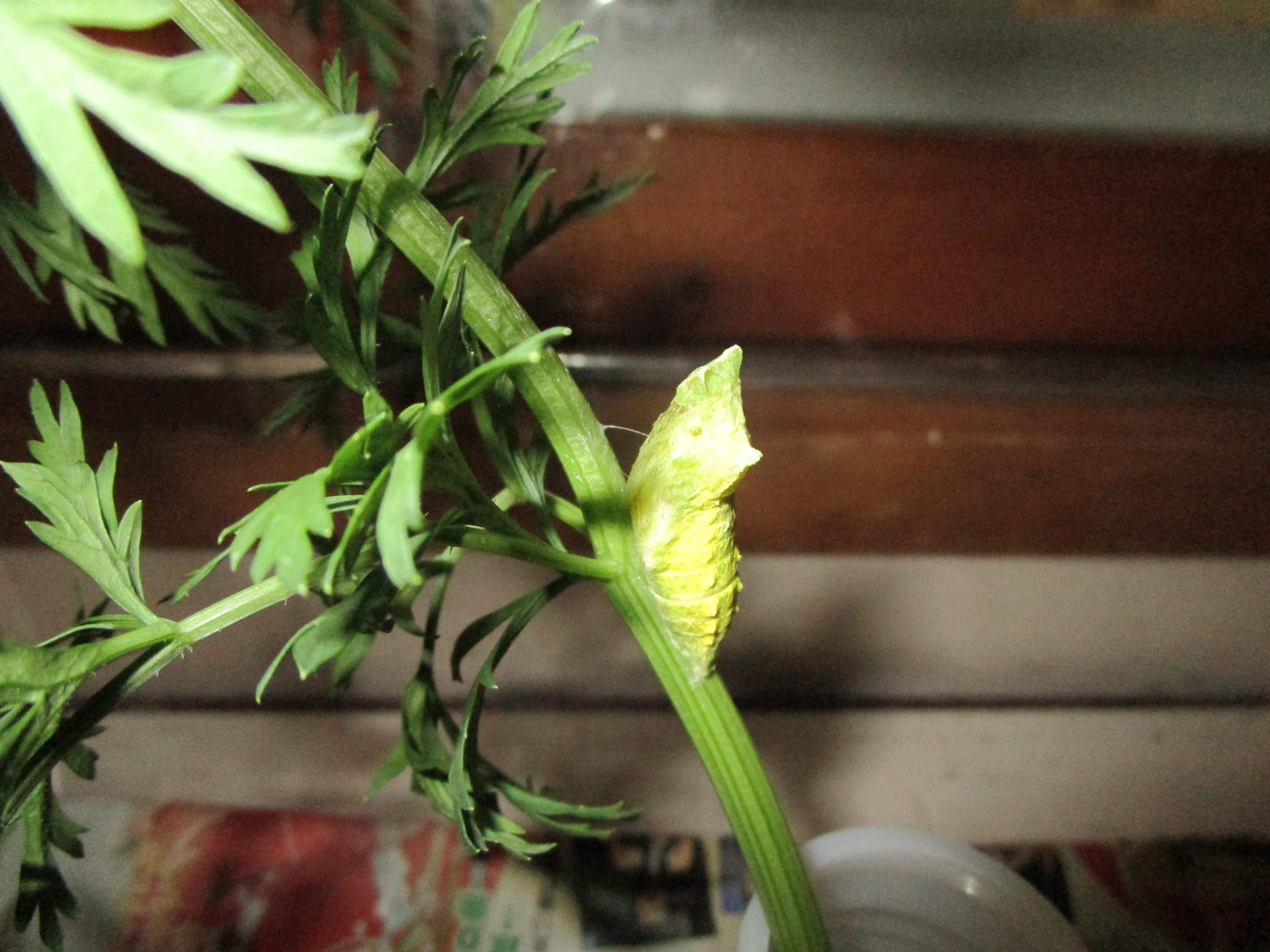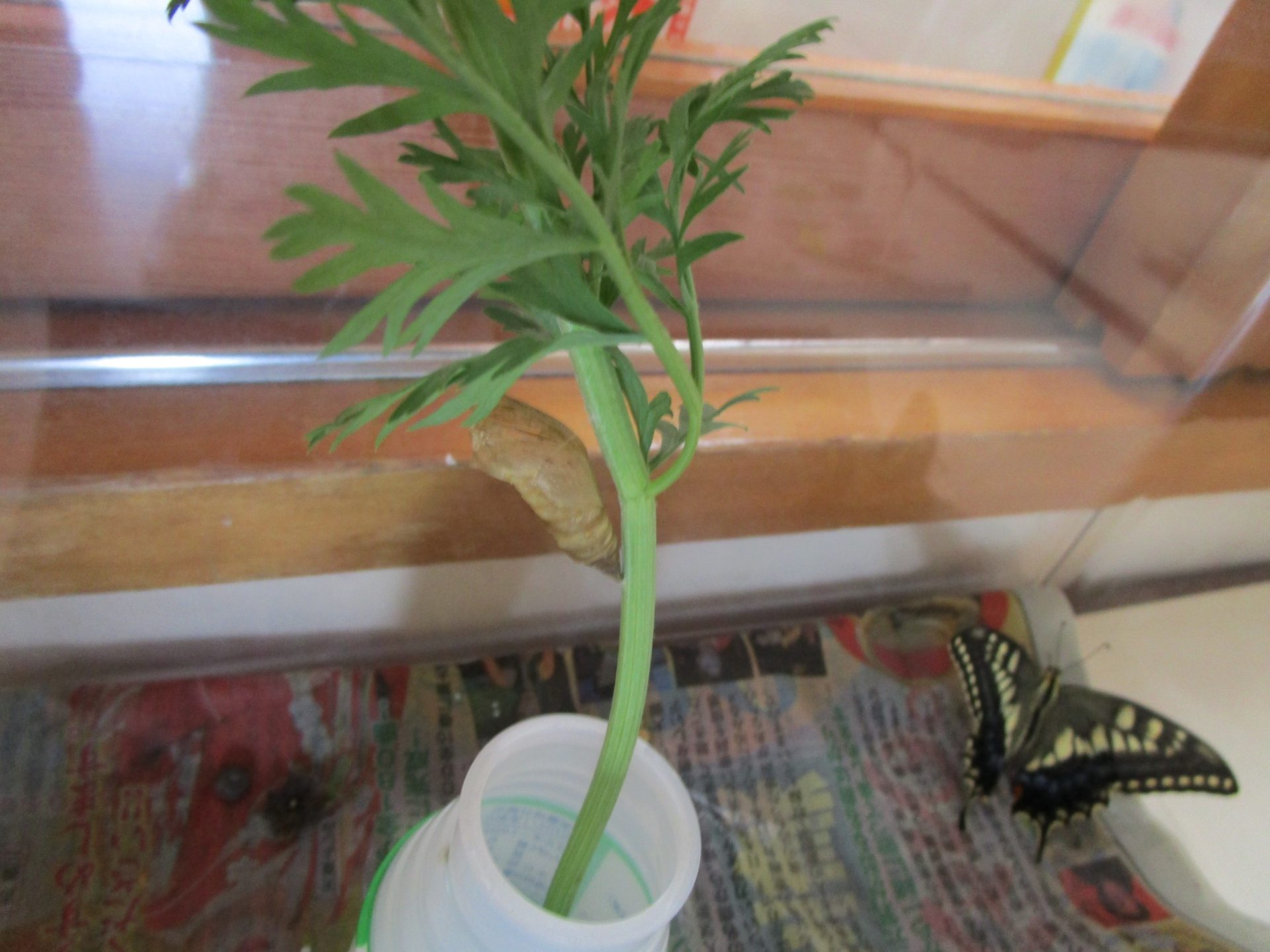 連休明け。「さなぎどうなったかな〜」と見にいくと、