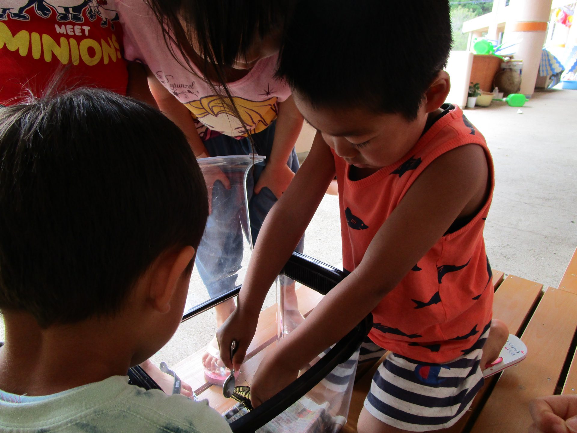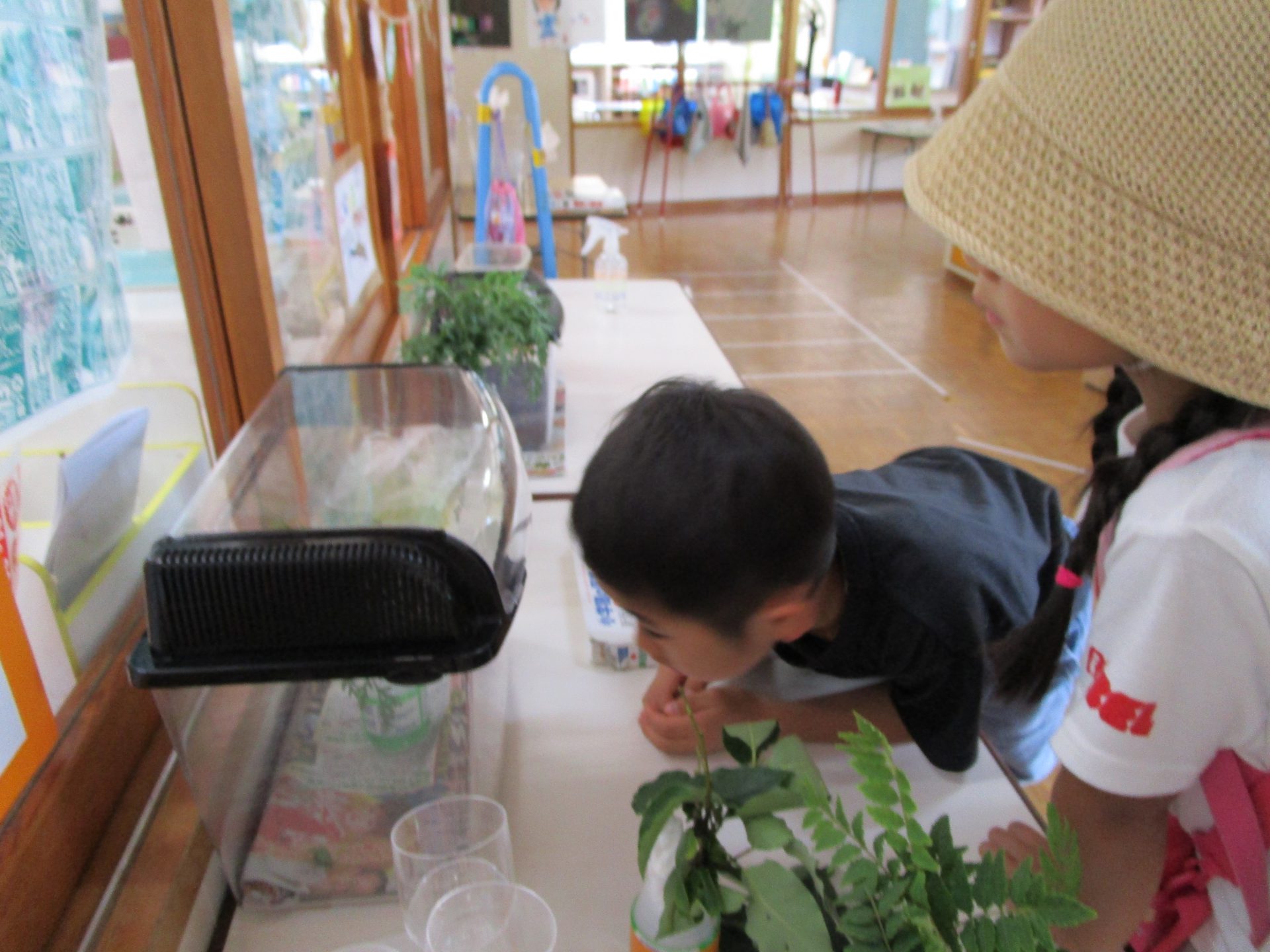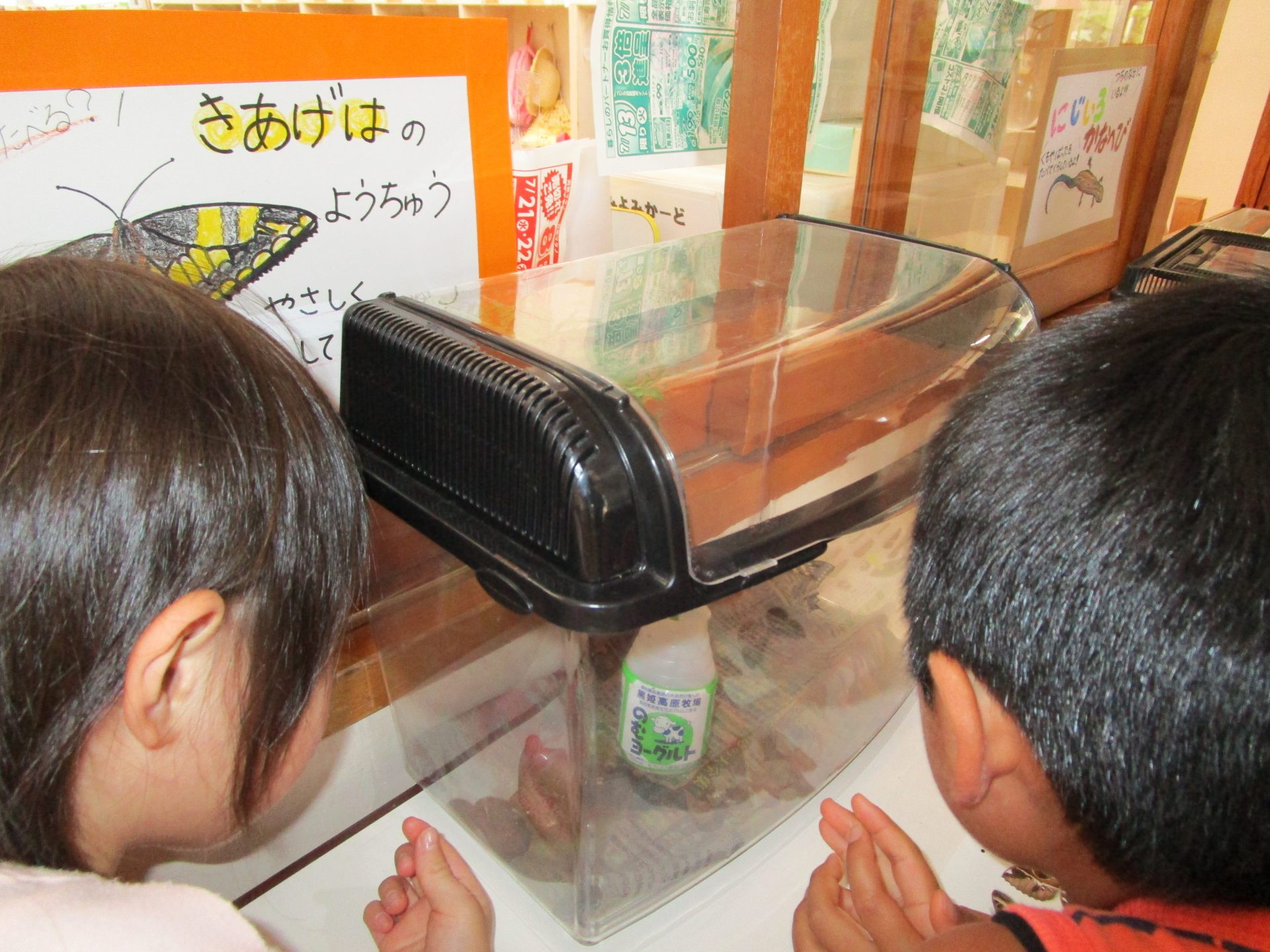 残念ながら羽化の様子は見られませんでしたが、無事成虫になり喜ぶ年中さんでした。
