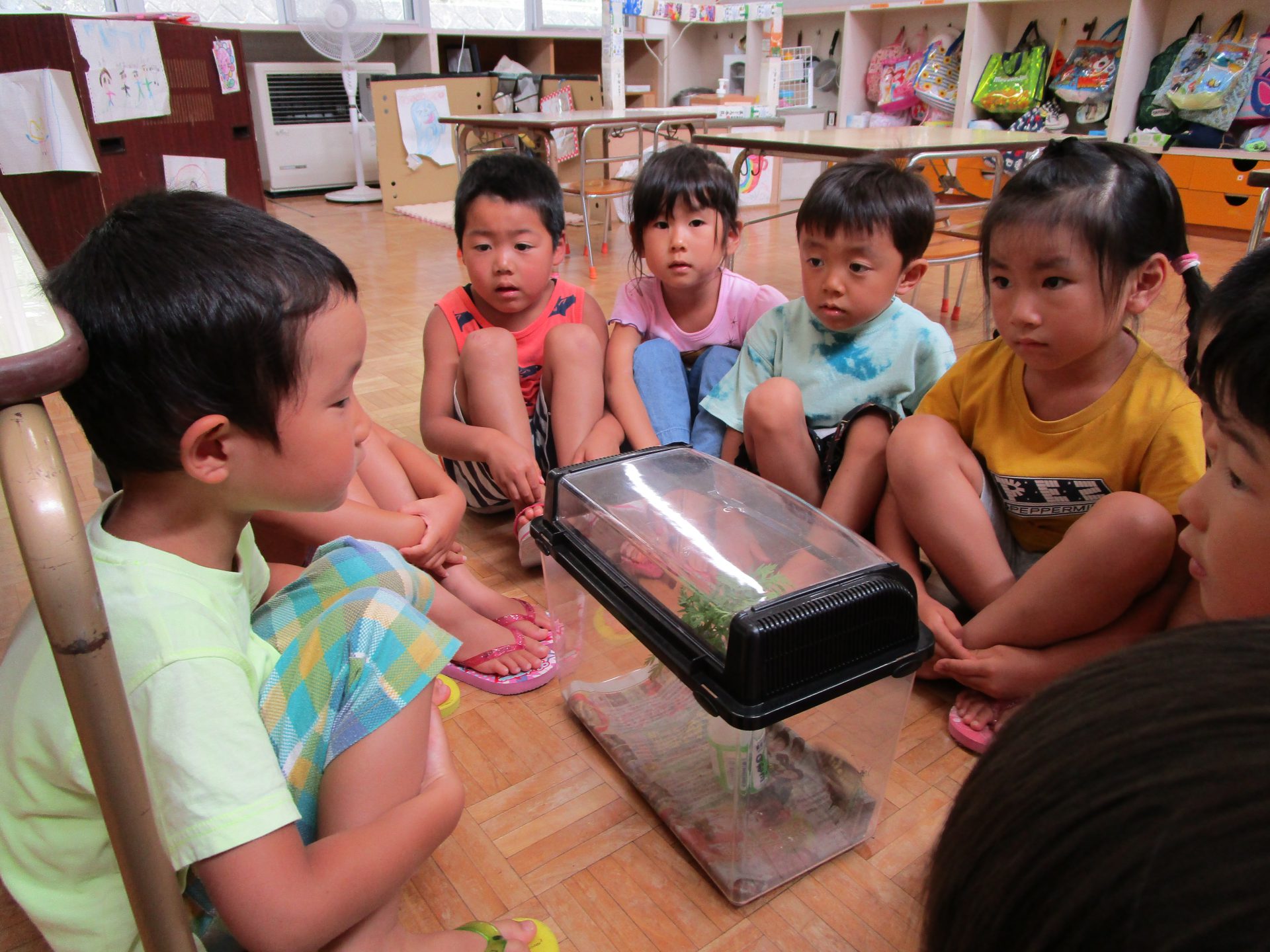 9月に入ってから気温がぐんと下がり、赤とんぼが空を飛ぶようになってきて秋が近づいて来ているのを感じます。 夏はプールにどろんこに夏のあそびを思い切り満喫した古間保育園のお友だち。その中でいろいろな生き物たちにも出会って来ました。その様子の一部をお伝えします。