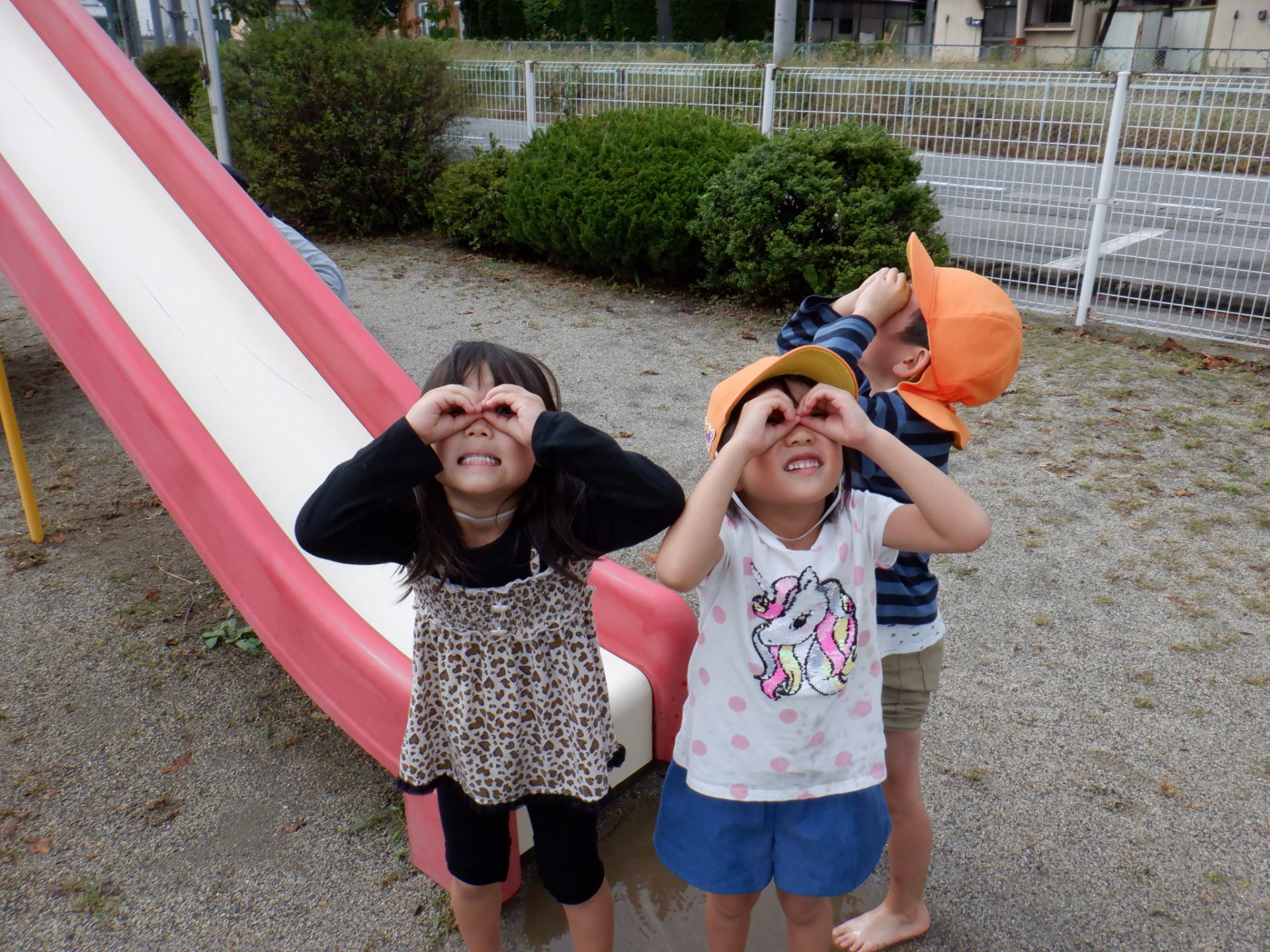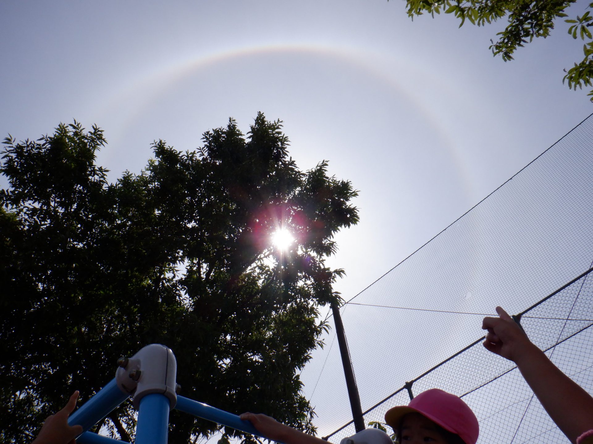 「はじめてみたよー」「お日様の周りに輪ができていたね」「丸の中の雲は少しくらいね」「ダイヤモンドが光っている指輪みたい」などそれぞれ思い思いのことを口にしていました。