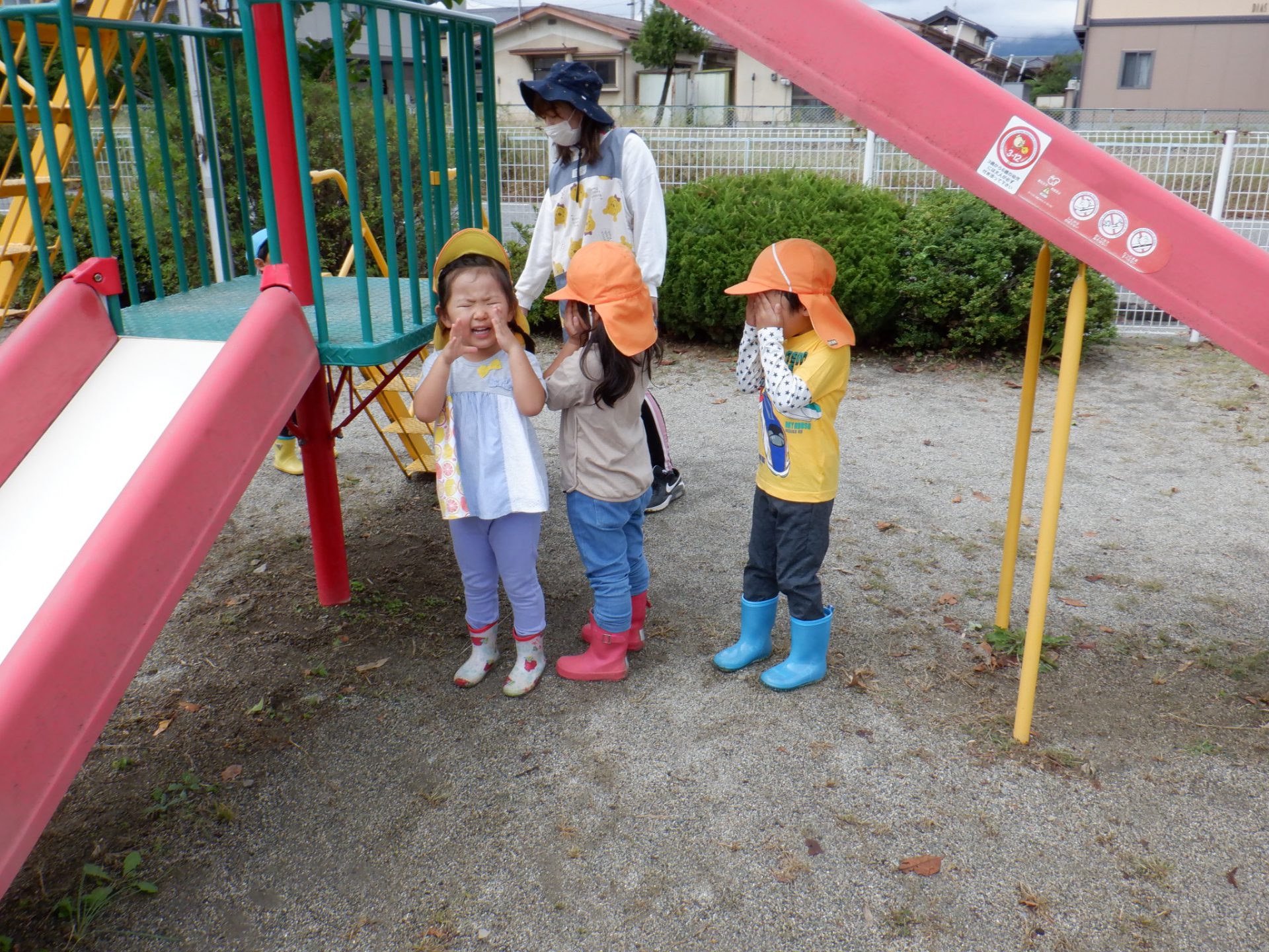 園庭で遊んでいるといつもと違う空。