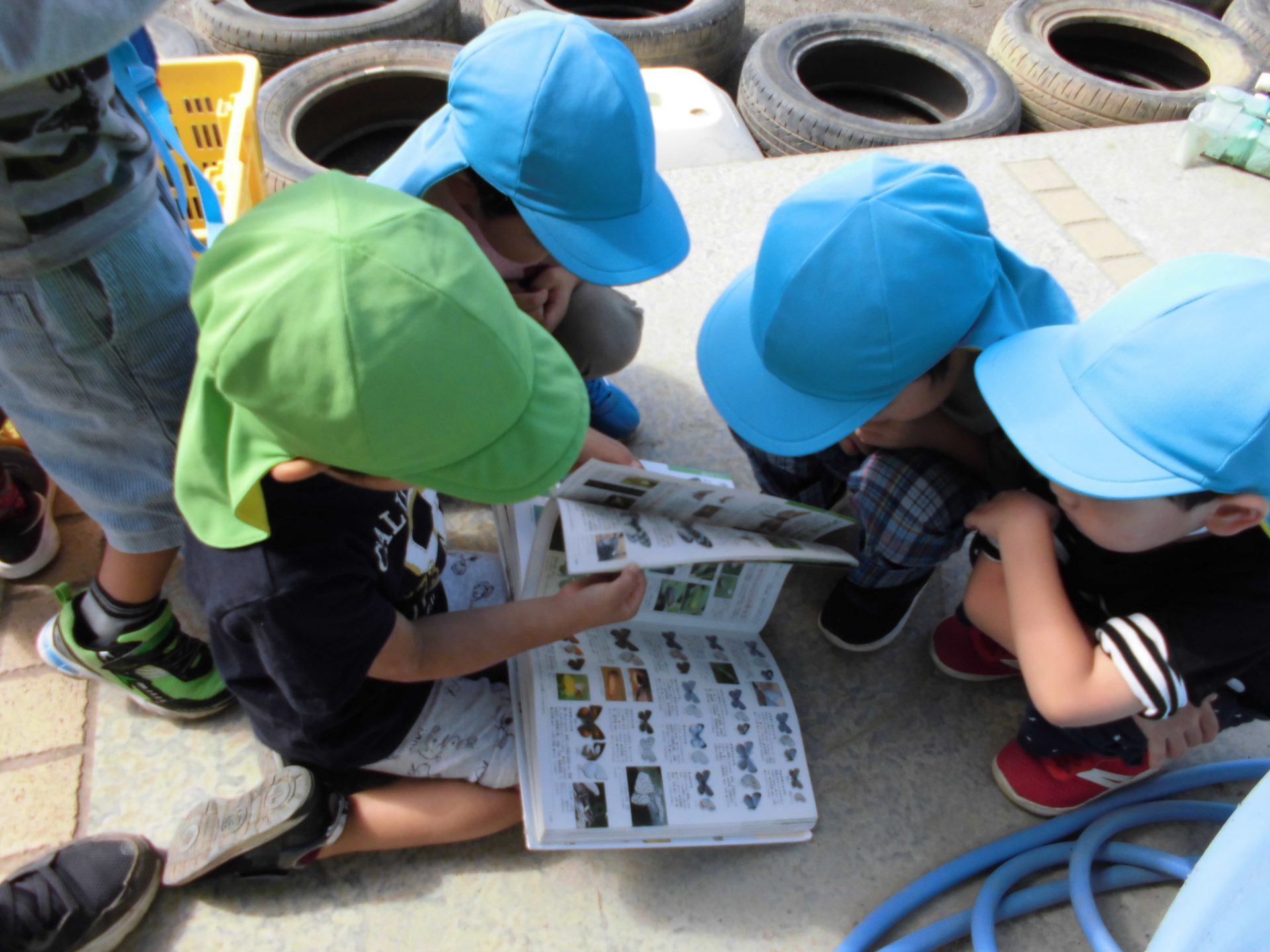 年中さんが”昆虫図鑑を”持ってきて、「これのどっちかじゃないかなあ」と幼虫と図鑑を見比べながら、調べてくれました!