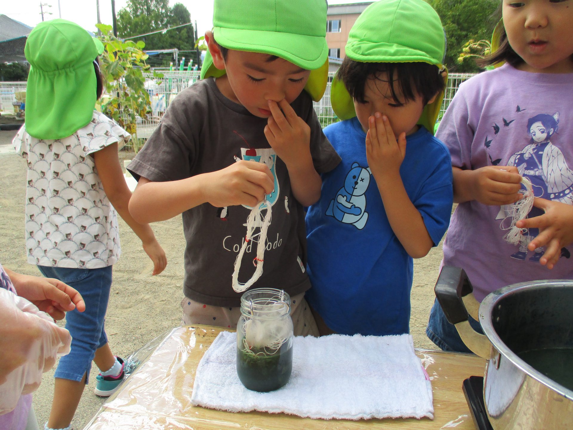 「なんか、くさいにおーい」と鼻をつまむ子も。