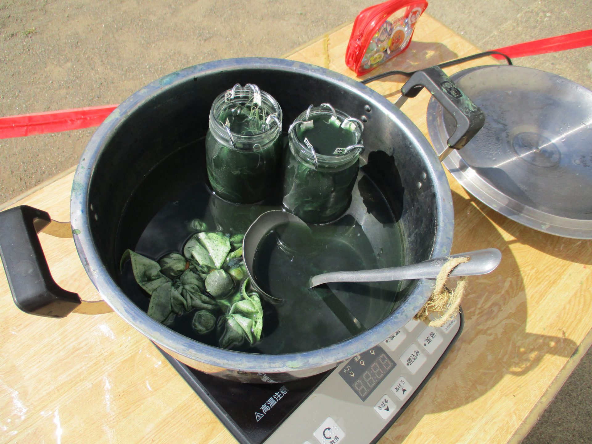 ☆最初は緑だった布が、お鍋から出すとだんだん青くなったよ!不思議だね!