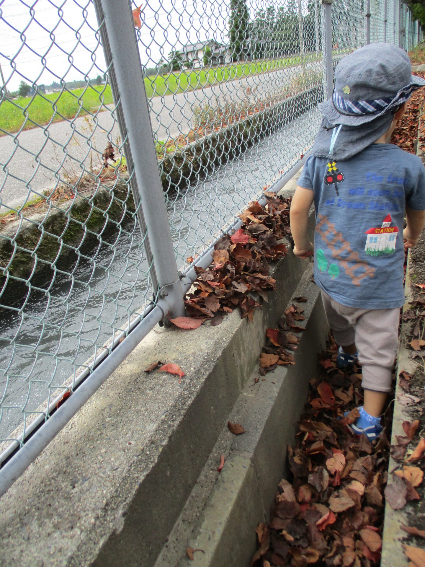 そのあと葉っぱを流して流れて行く様子を楽しんでいました。