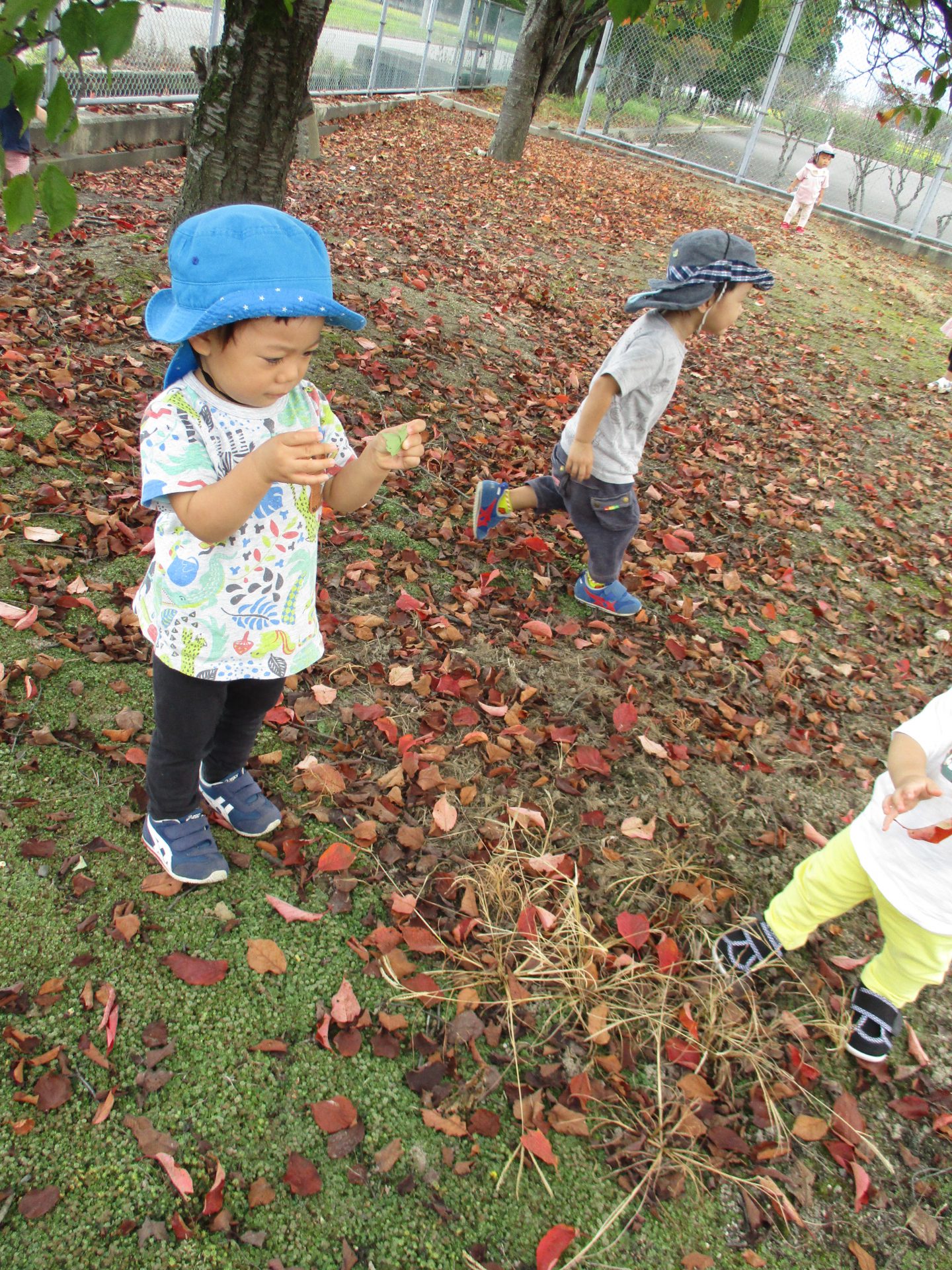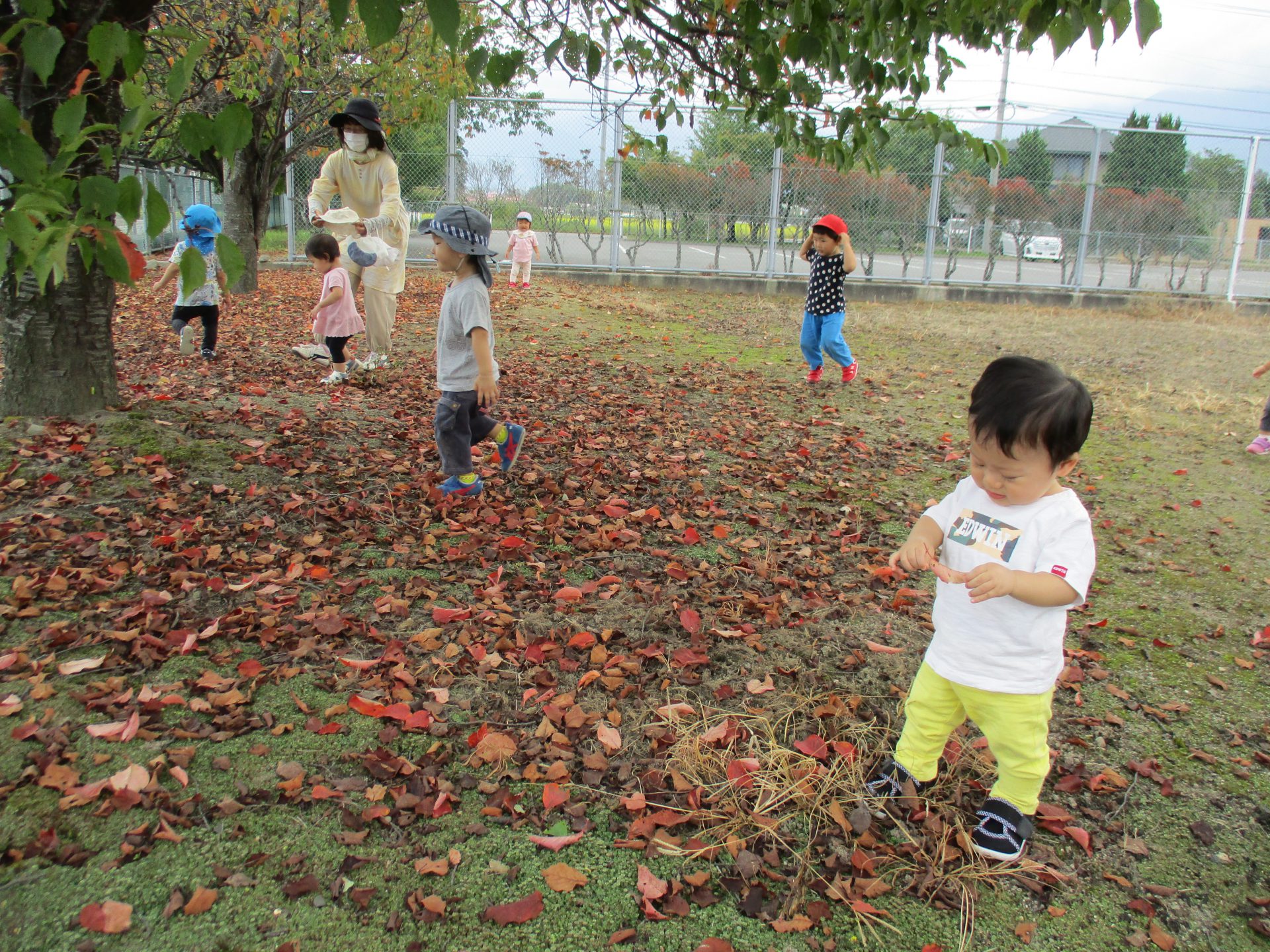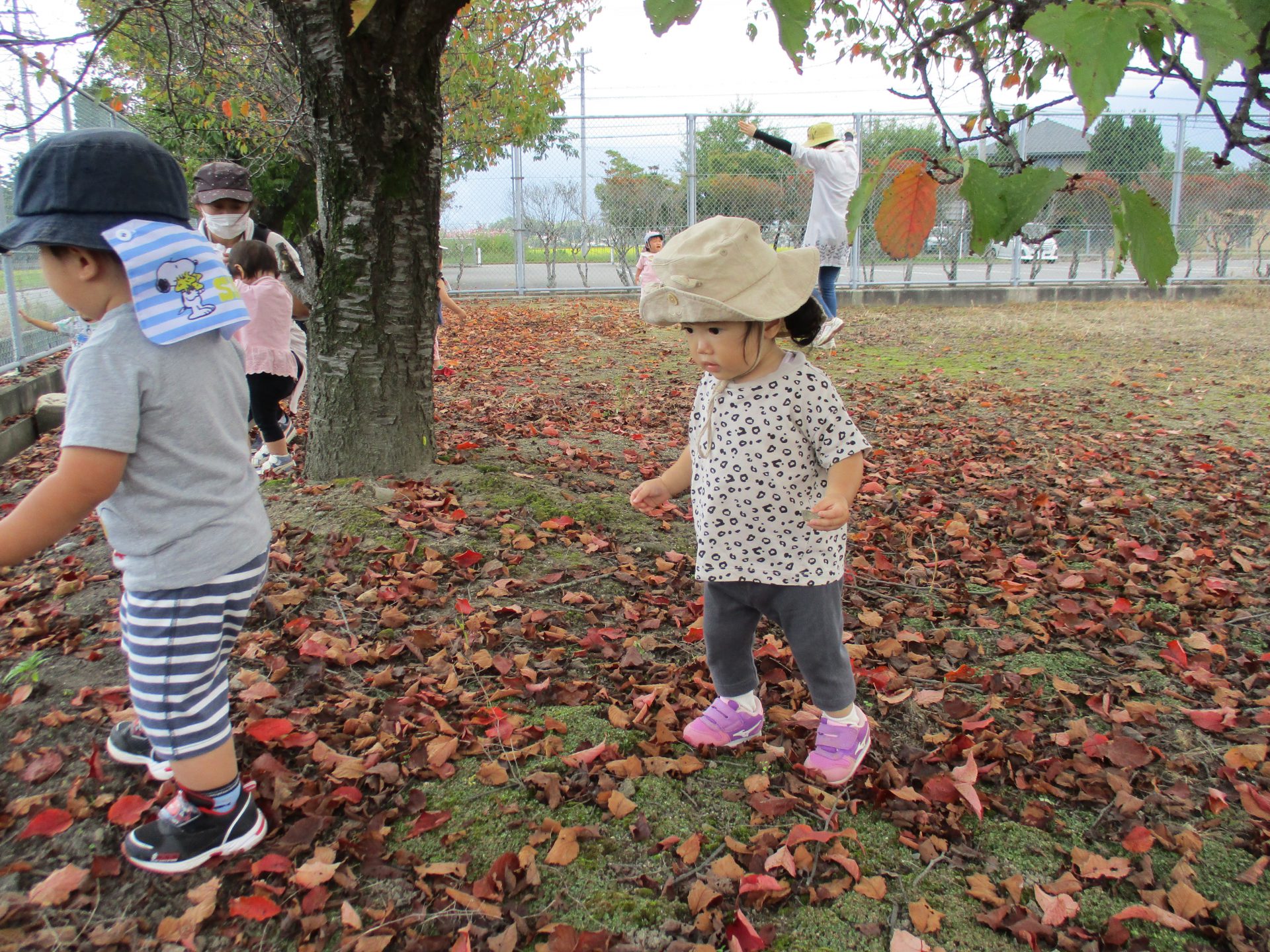 秋も終わりかと思うような落ち葉がたくさんあり子ども達も興味津々でどんどん向かって歩いていました。