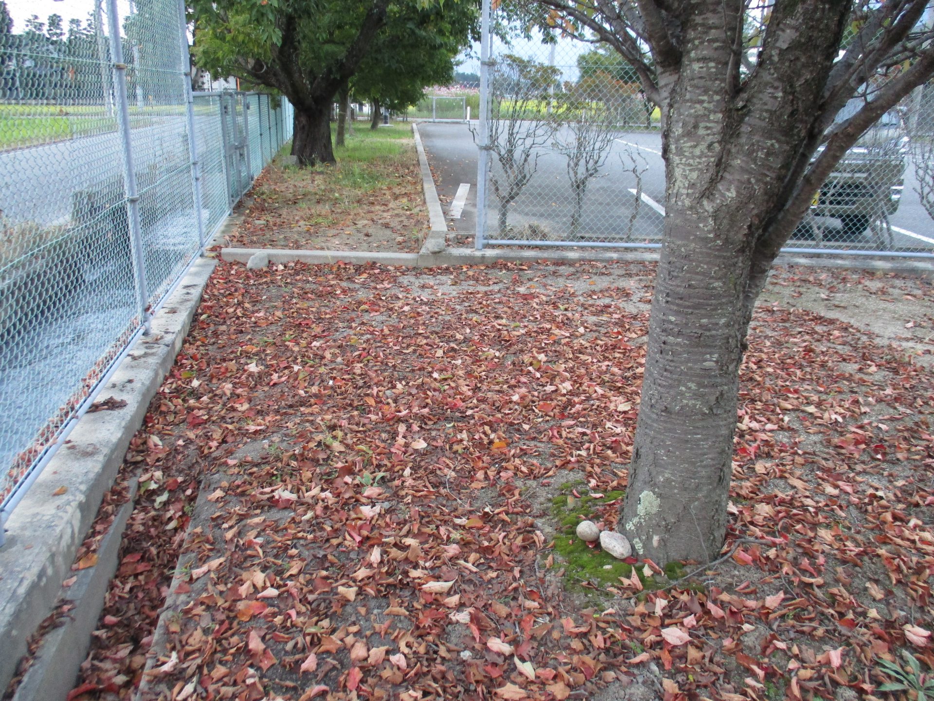 散歩の途中で東グランドに立ち寄ったらさくらの葉っぱの落ち葉を発見。行ってみよう!!