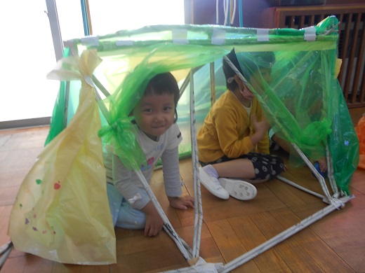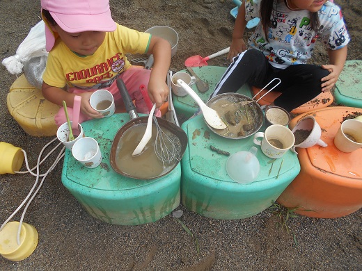 すぐに料理作りが始まり、お店屋さんごっこになり・・・・遊びに必要な材料を様々な物で見立てて遊んでいます。