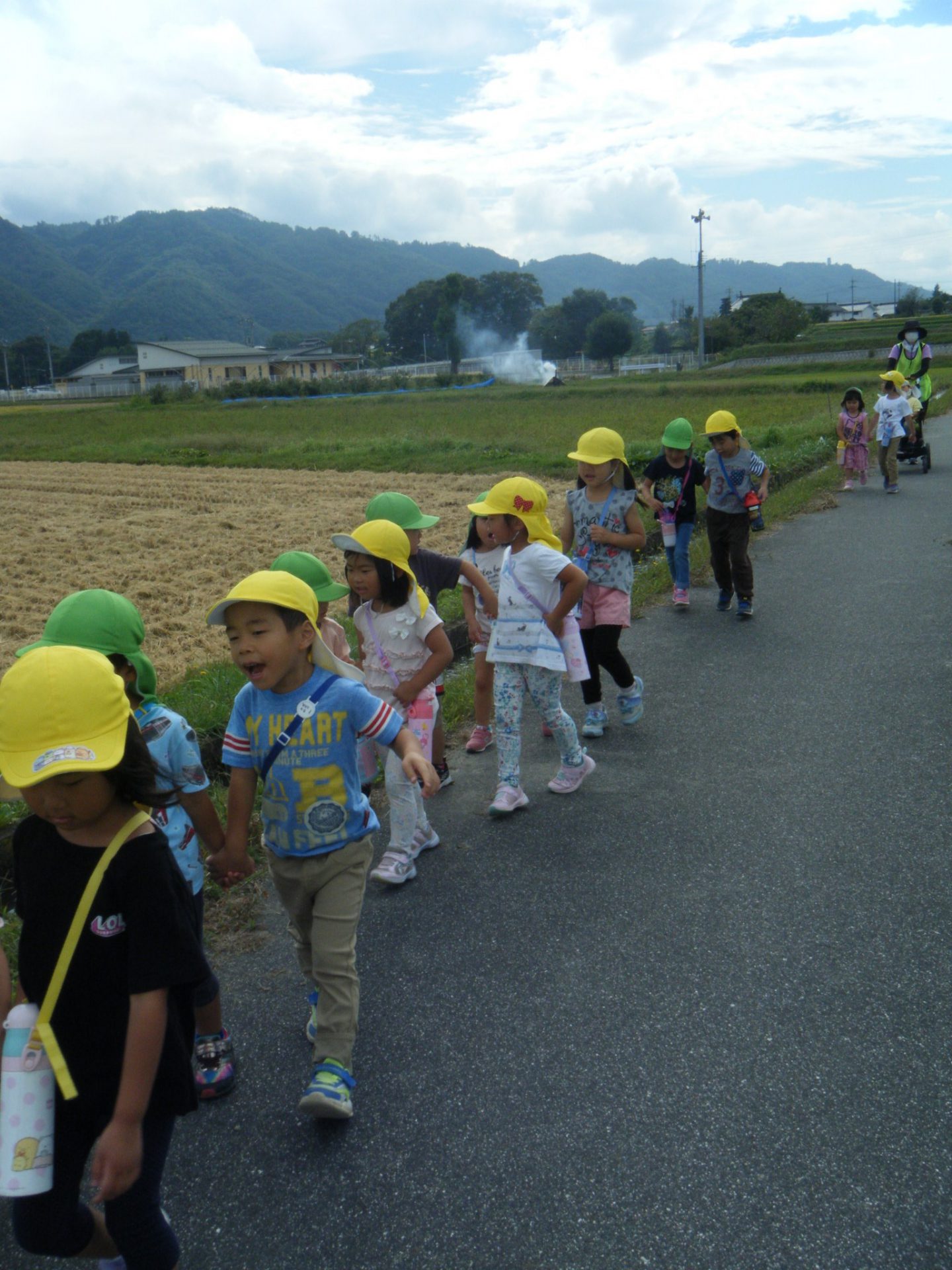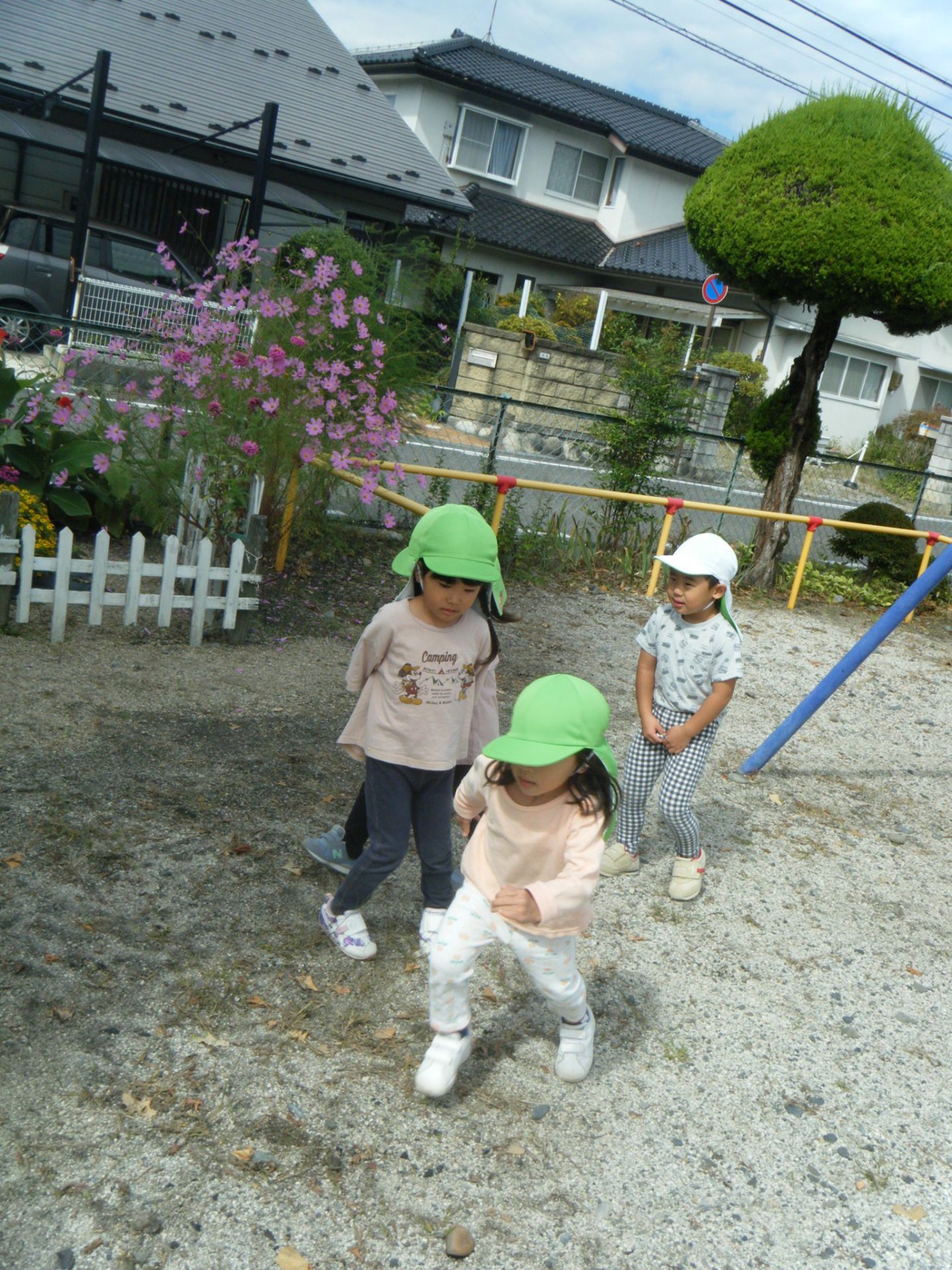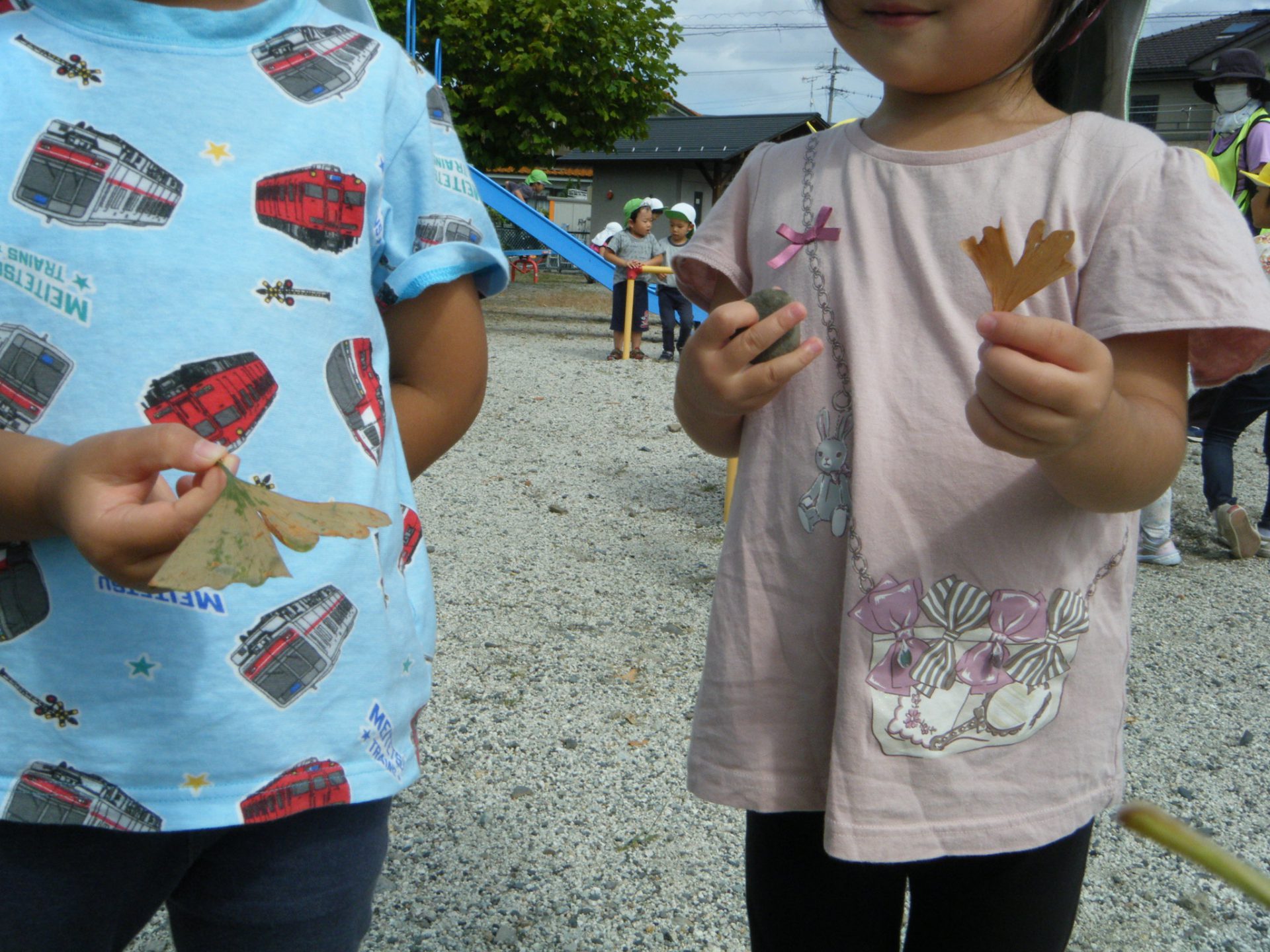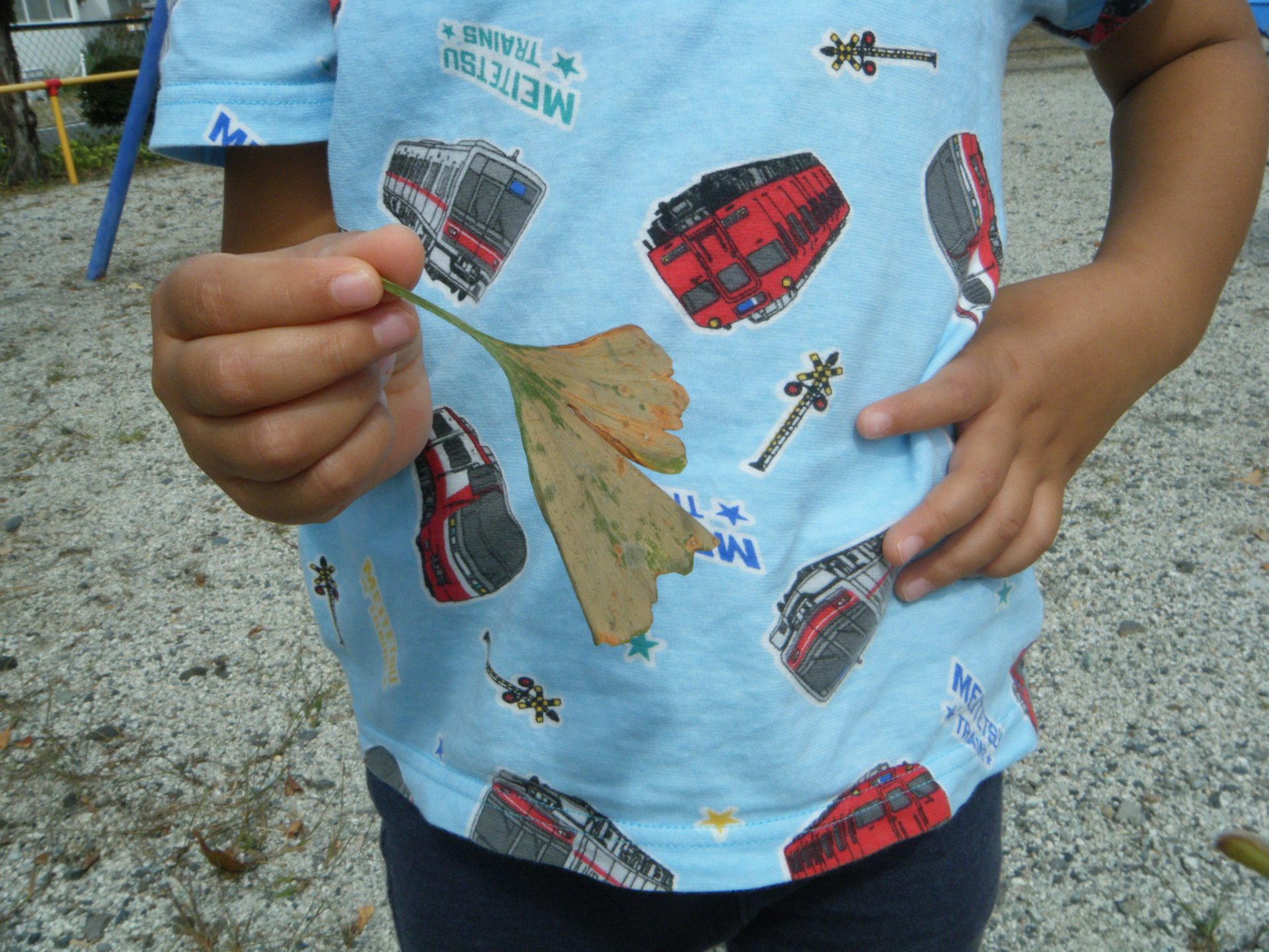 戸外あそびや散歩を通し、葉や風景の色の変化によって秋を感じれたらいいなと思います。