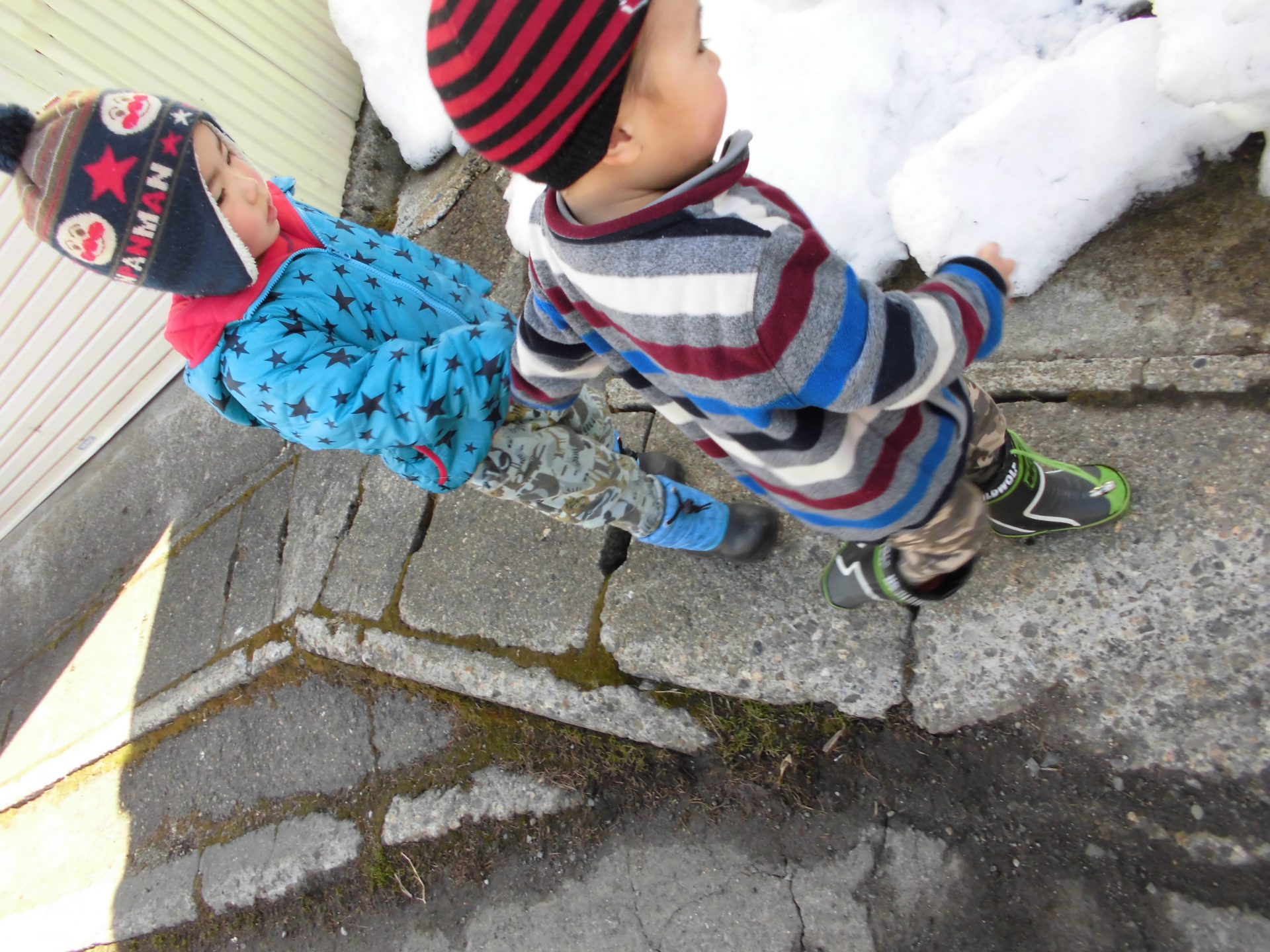 「あれ?雪ないね~!」「階段あったー!!」