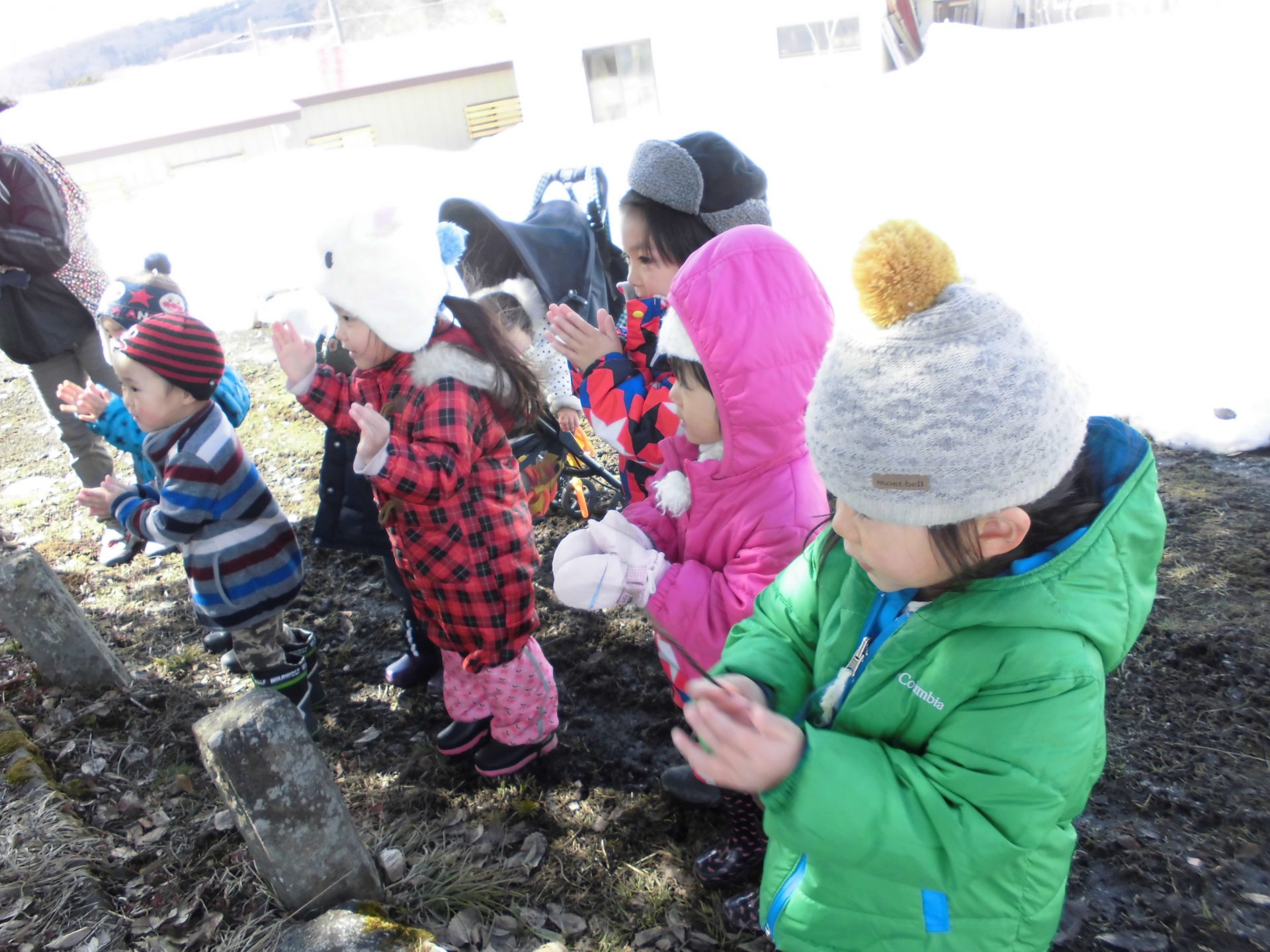あれだけあった園庭の雪もこんなに少なくなりました。