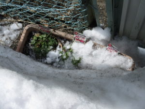 今年は雪が深く、なかなか出て来ません。4歳児も加わって2日がかりで掘りだすことに成功しました。おひさまの光を浴びてきれいに咲くといいね。