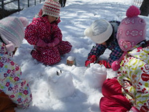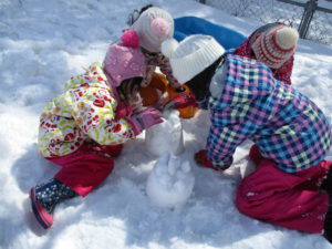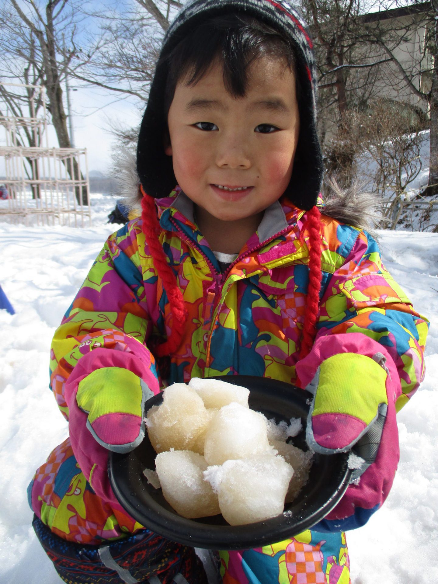 大好きな雪合戦!「顔はいけないんだよ!」「雪がざらざらしてるから当たると痛いもんね!」雪質の変化によりルールも変更。友達との意見のすり合わせも上手になりました。