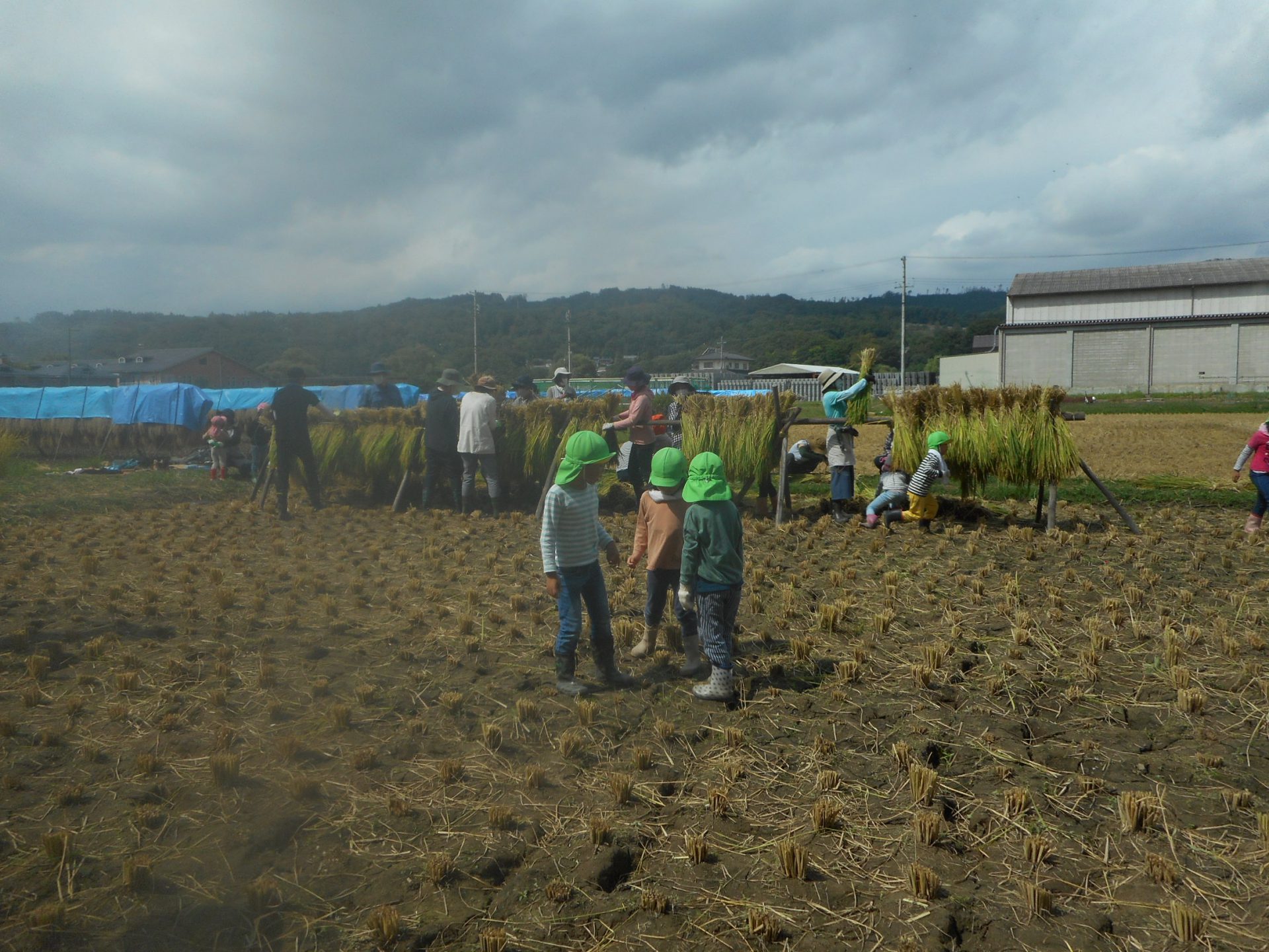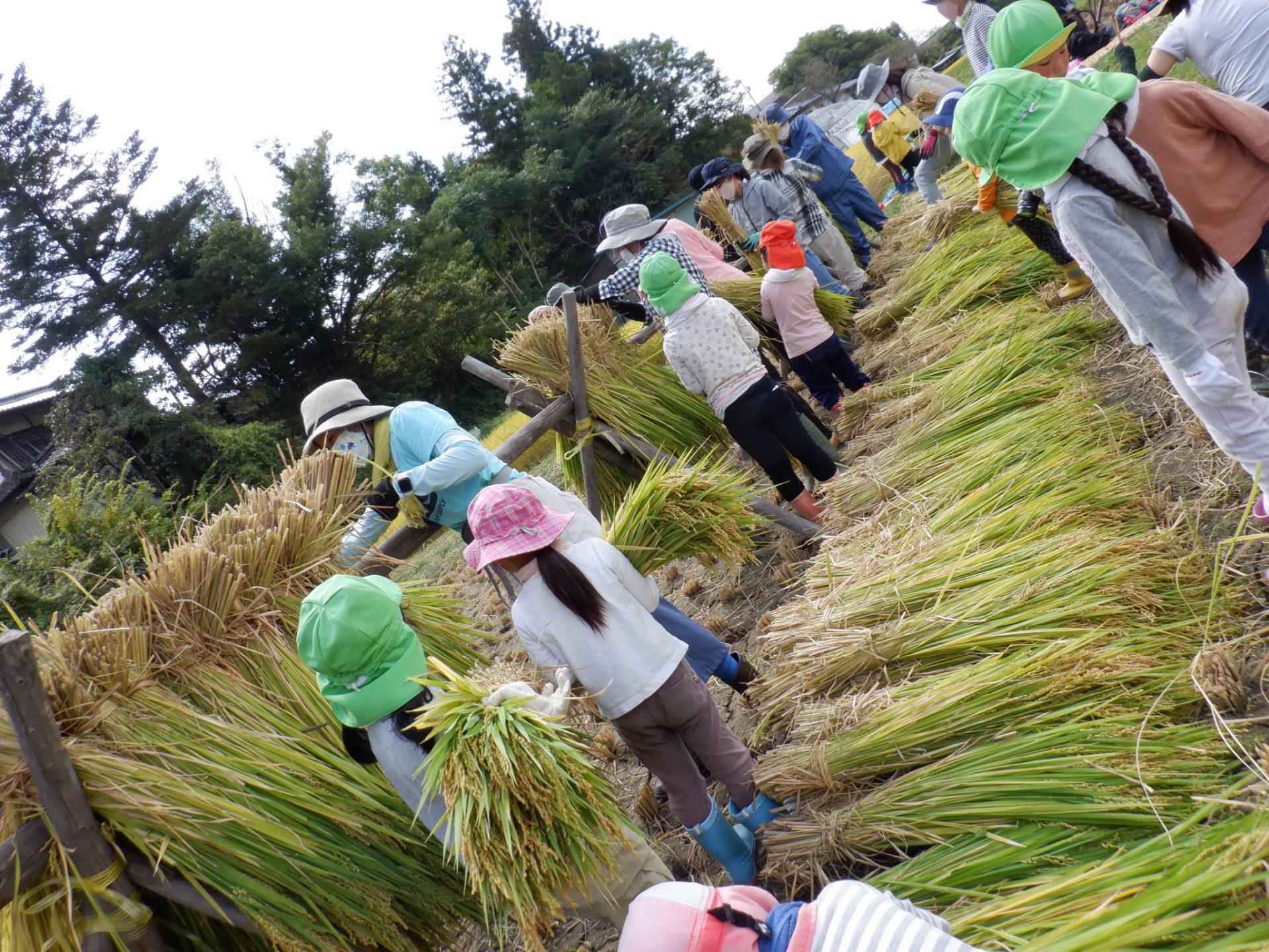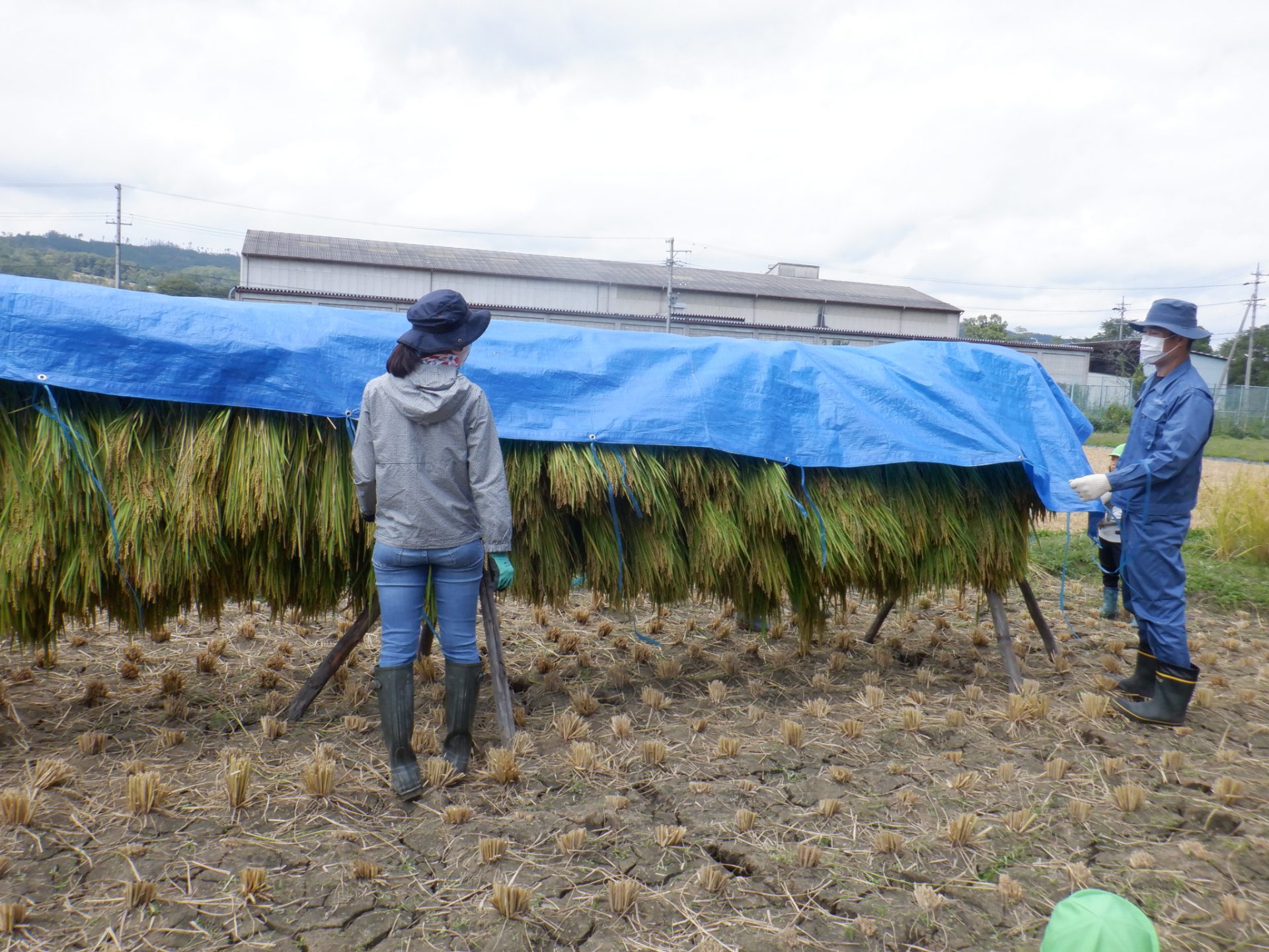 みんなの手と力で、稲刈りとはぜかけまでを終えました。