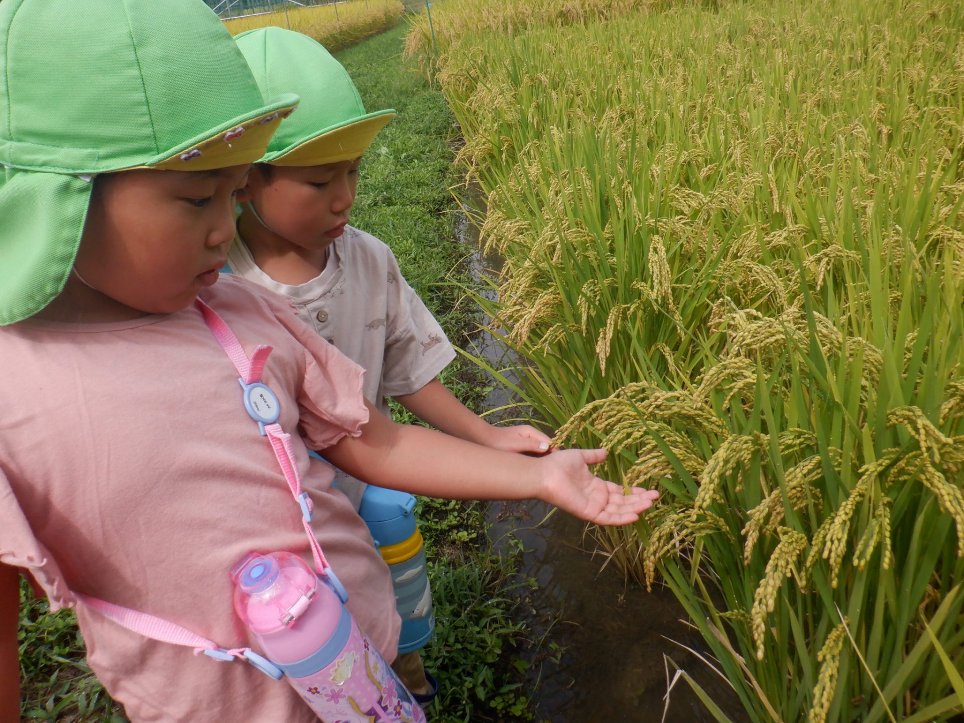 稲が育っていること、稲穂にお米があることを触って実感していました。