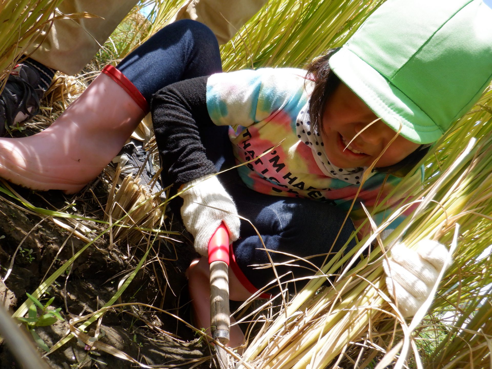 春から田んぼ作業を通して、どろどろの土の感触を味わったり、田んぼの中にいる生き物に関心を寄せたり、子どもたちはこの田んぼで色々な経験をしてきました。