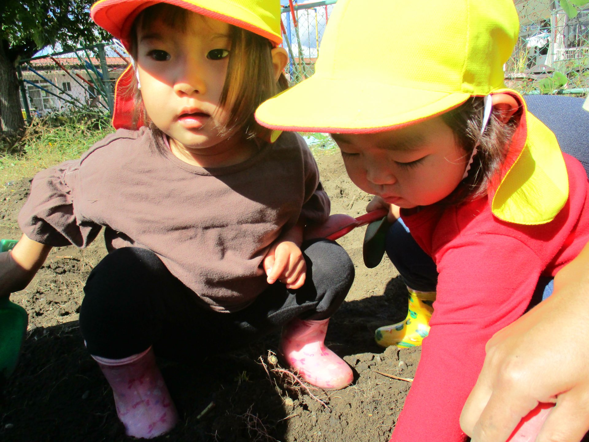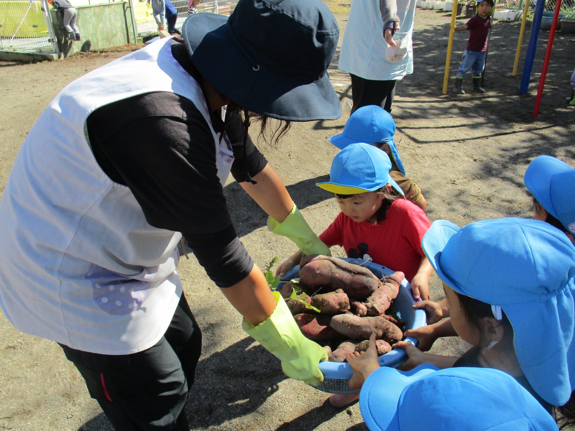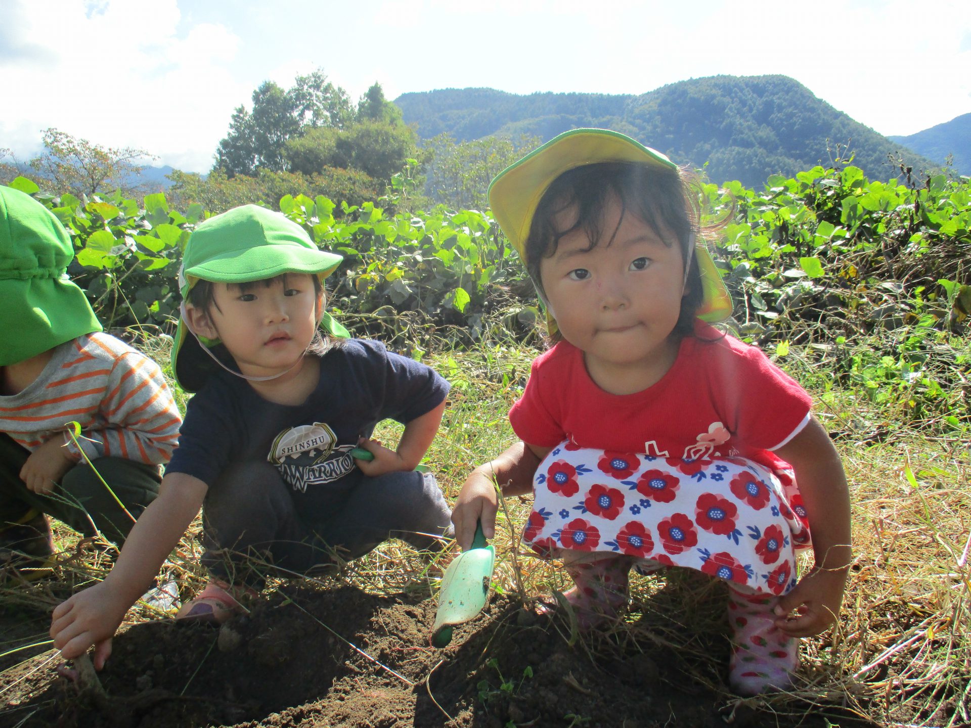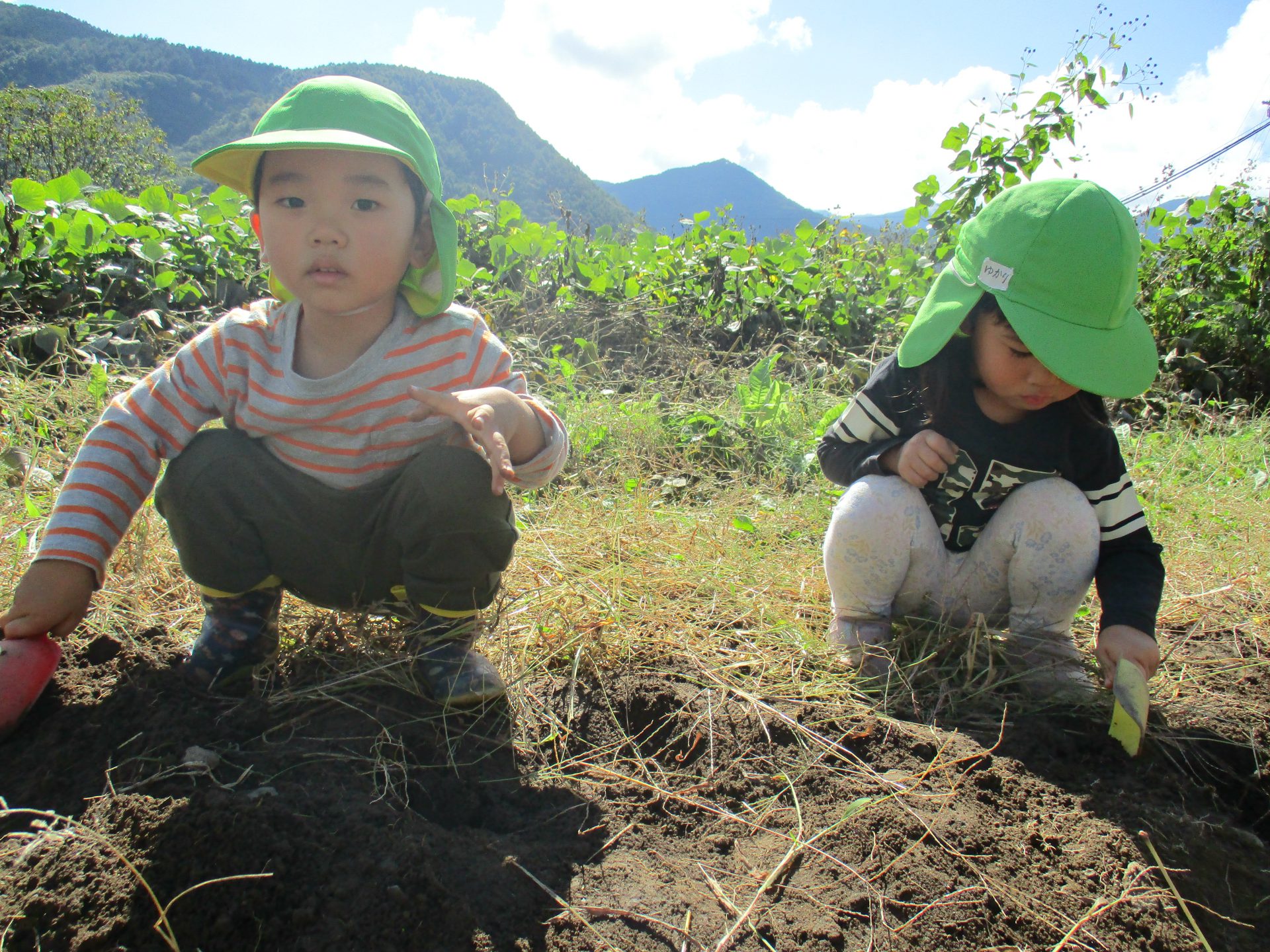 また、さつまいもが傷つかないような掘り方を、年長児が年少児に教える姿がありました。