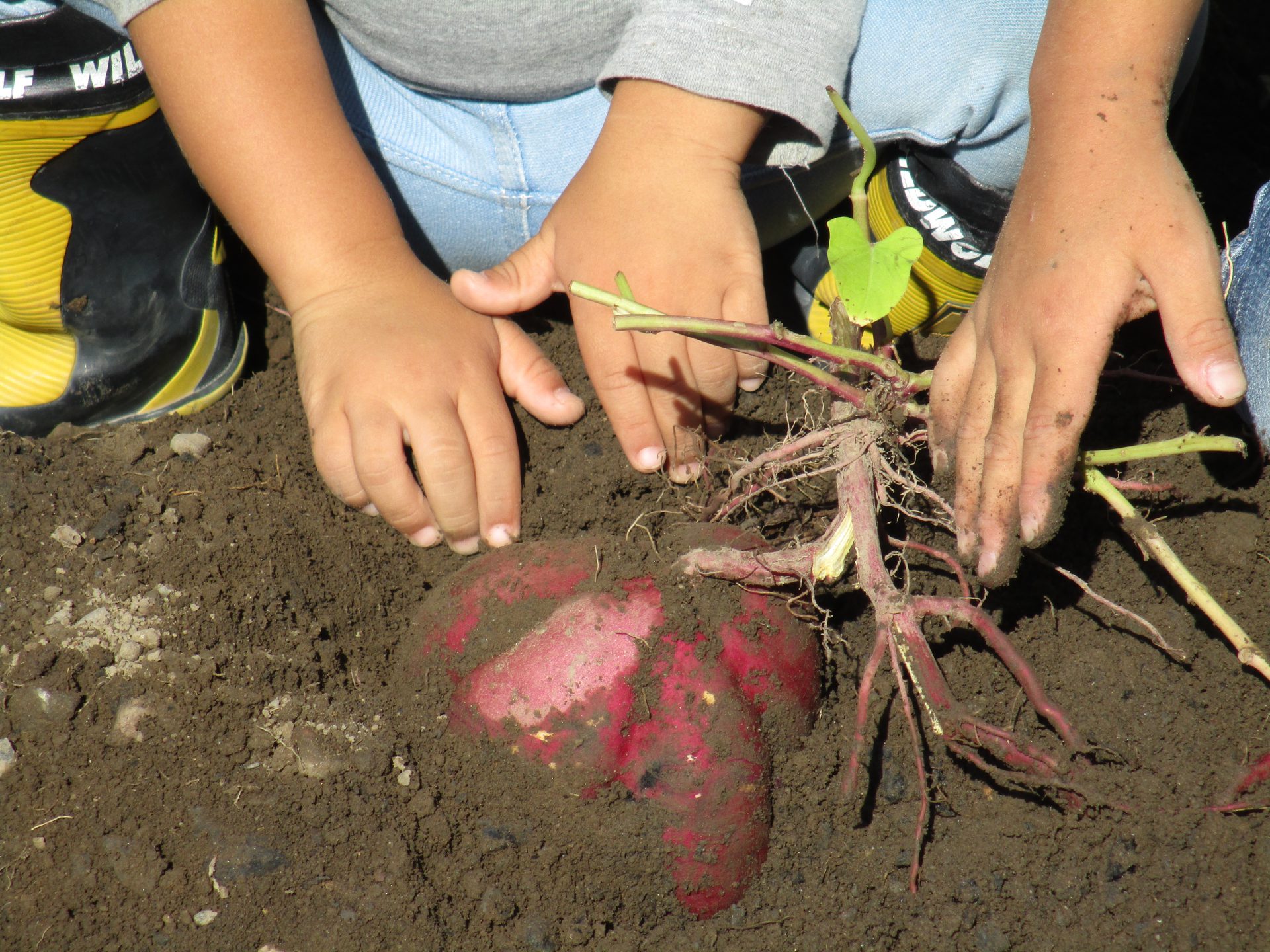 「おいもが傷つかないように、そっと掘ろうね・・・。」