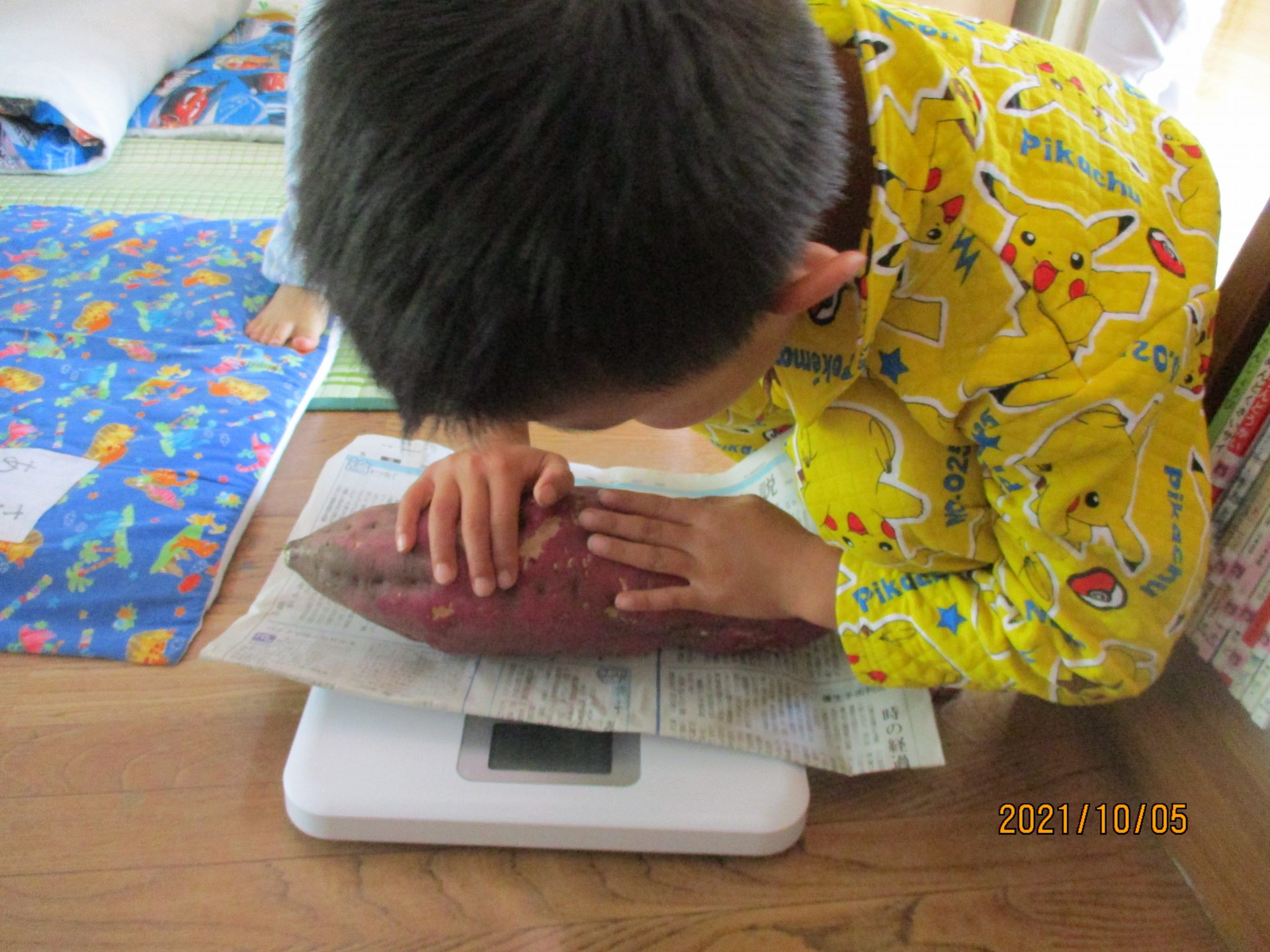 「2,5キロ!!」「1,8キロ!!」それぞれに自分のさつまいもの重さを確認したり、友達と比べたりしていました。