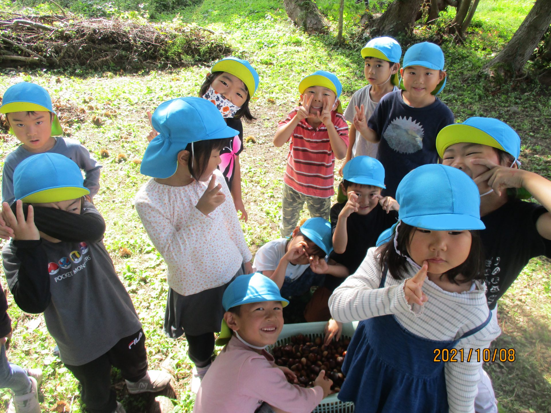 そんな中、今度は栗拾いにも招待していただきました。昨年も行かせていただき、いがに入った栗の出し方や、虫が入ってる栗は穴があいてることなど思い出して友達と確認しあっていました。
