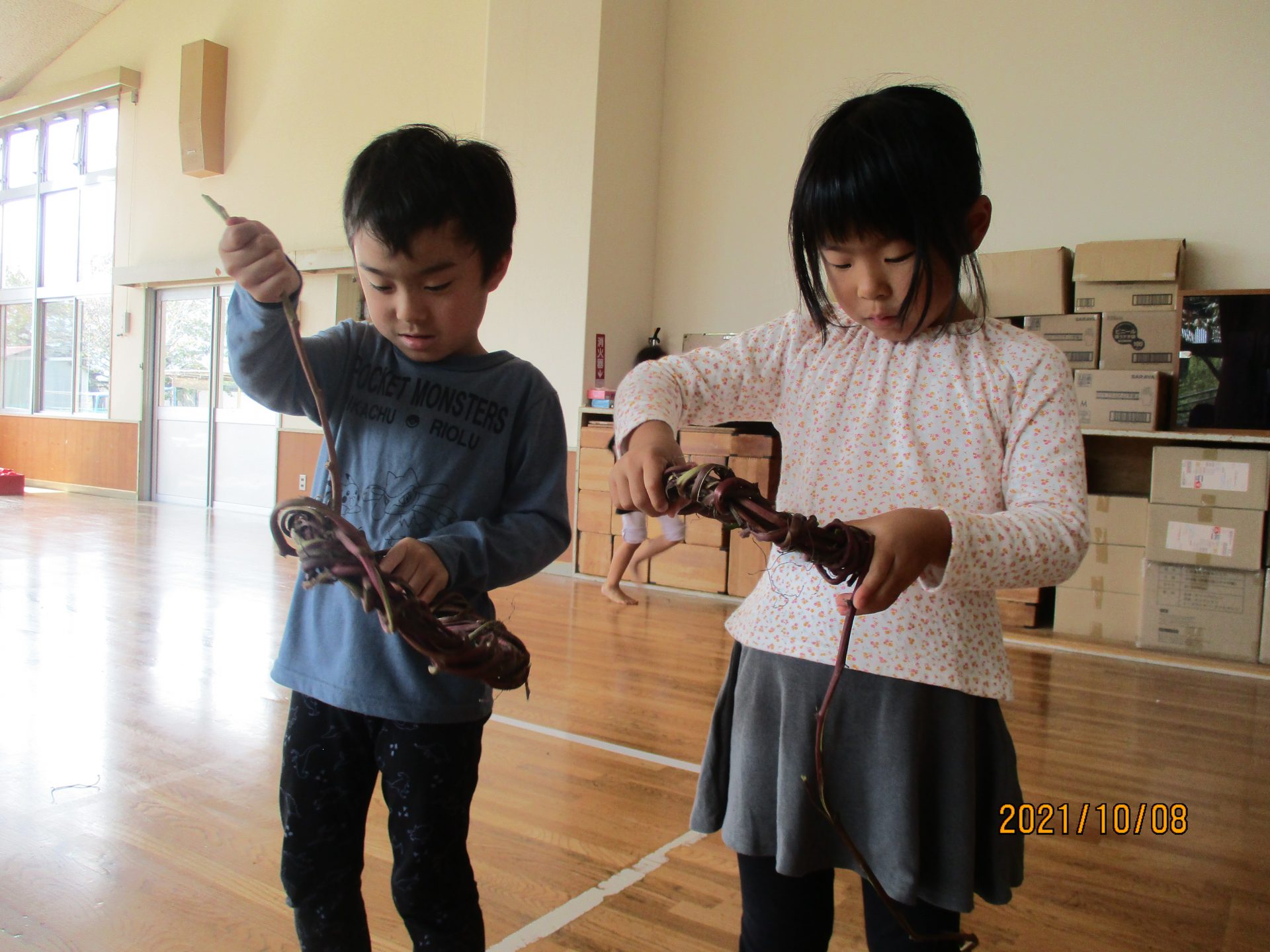 さつまいも堀りをしたときに、さつまいものつるも見せてもらいました。