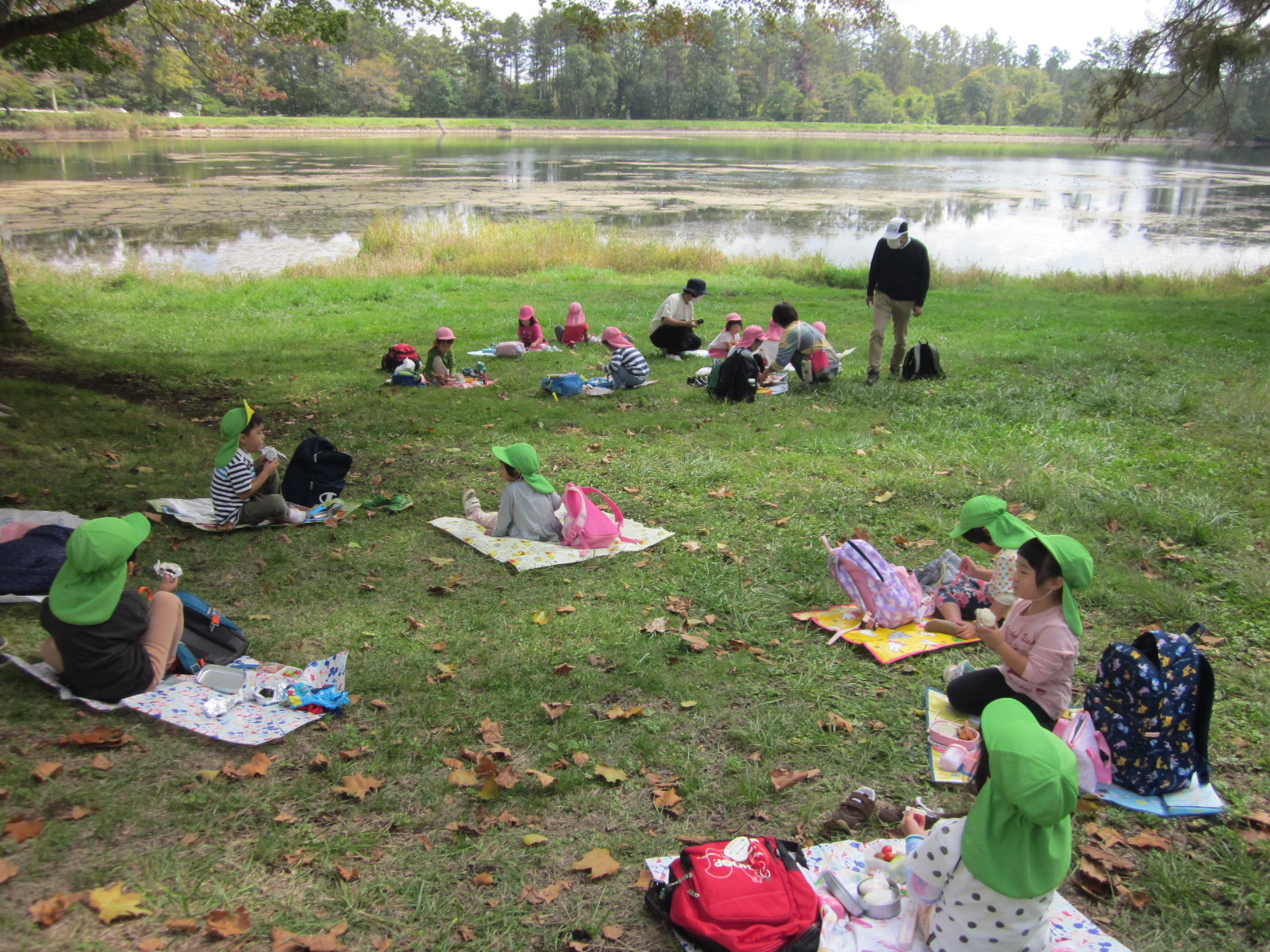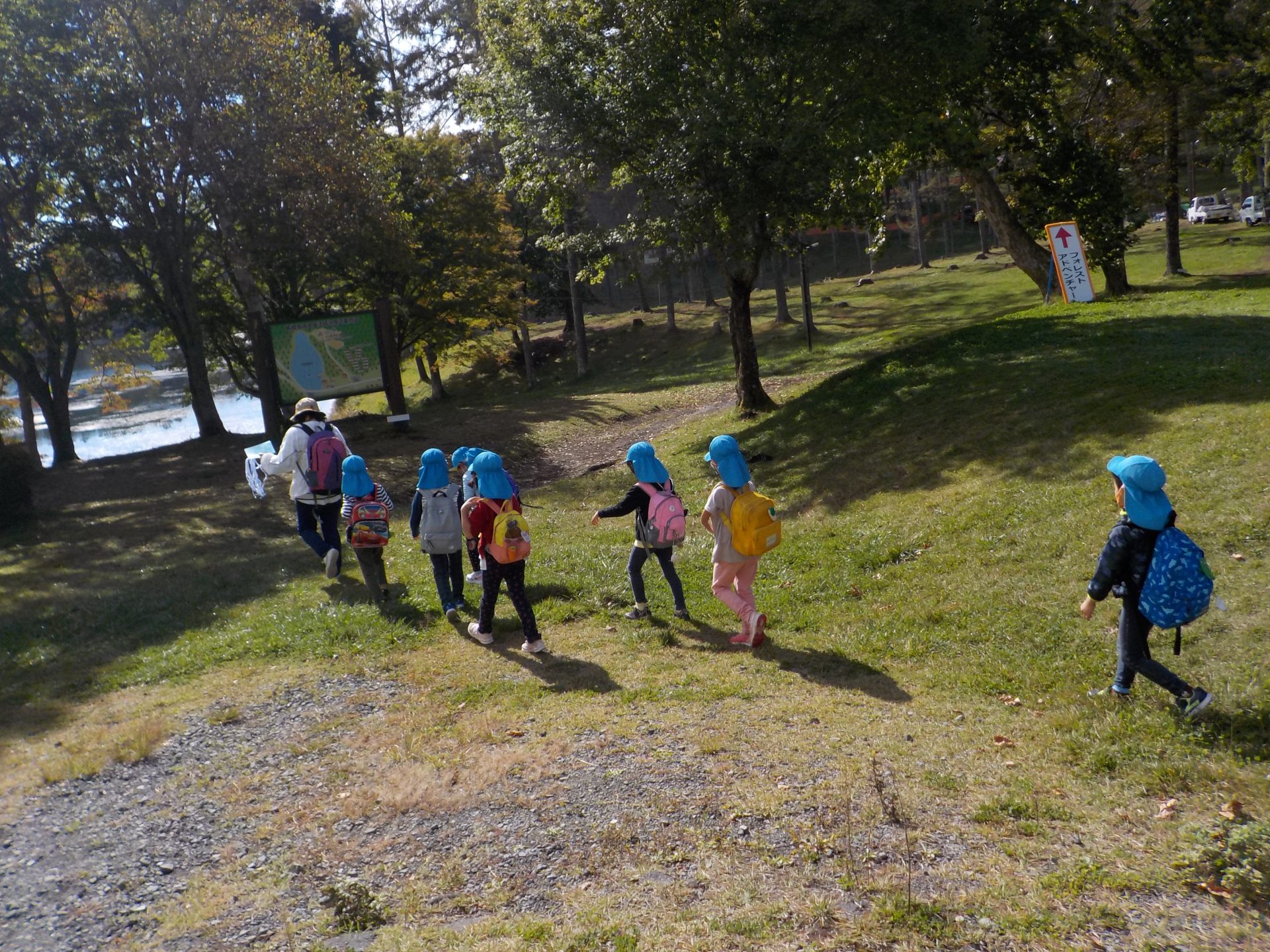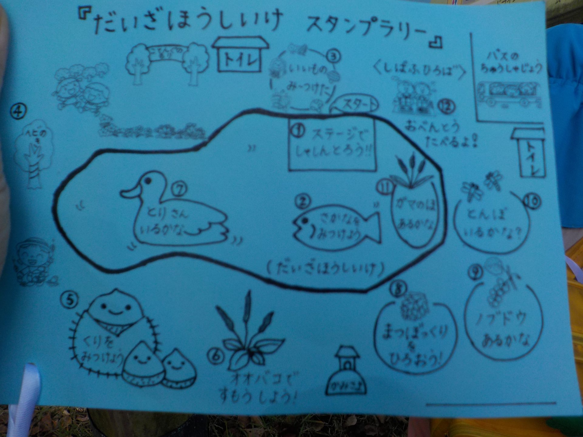 各年齢ごと、「いいものみつけたカード」を持って、スタンプラリーをして、池周辺の自然を楽しみました。