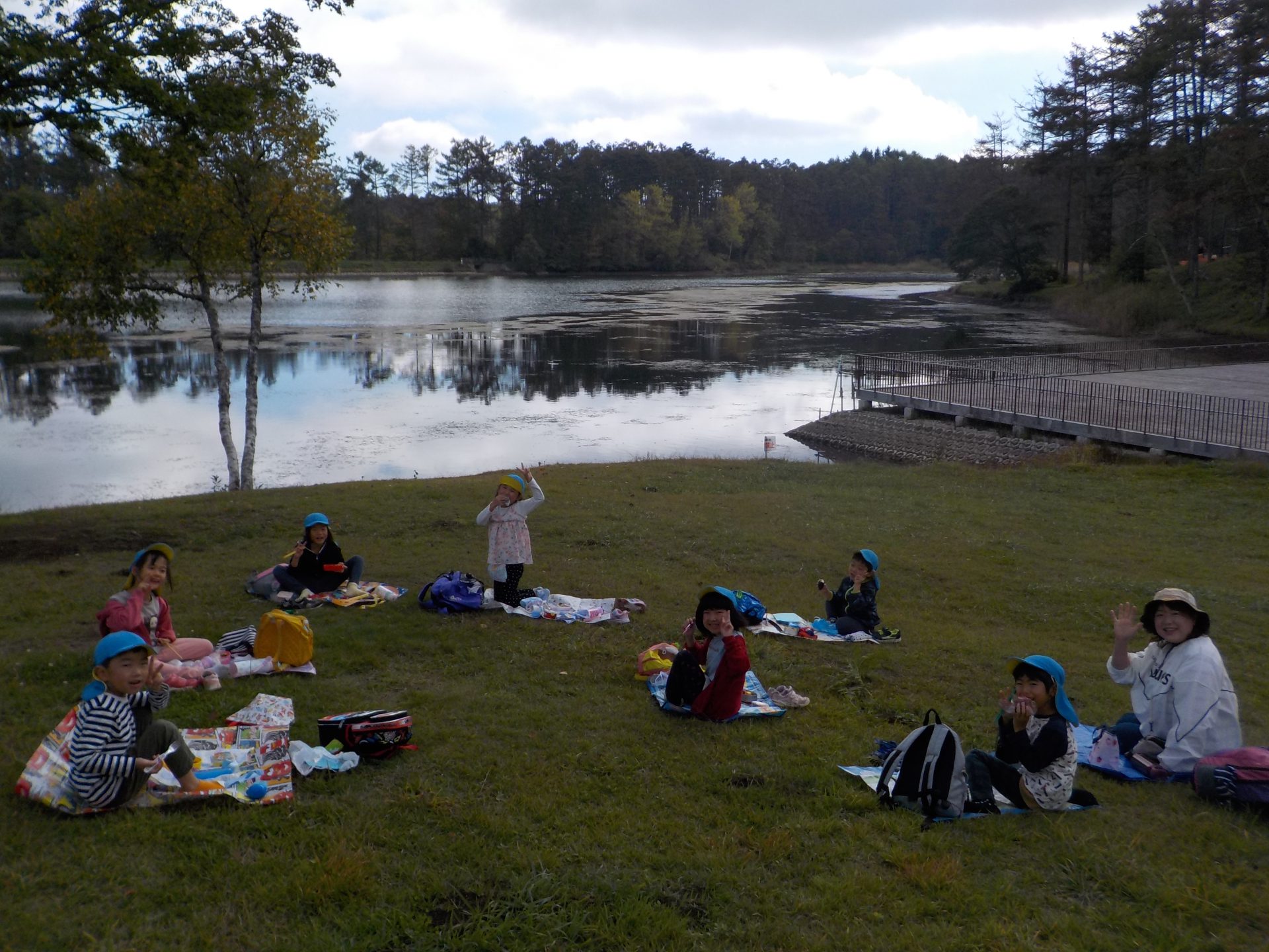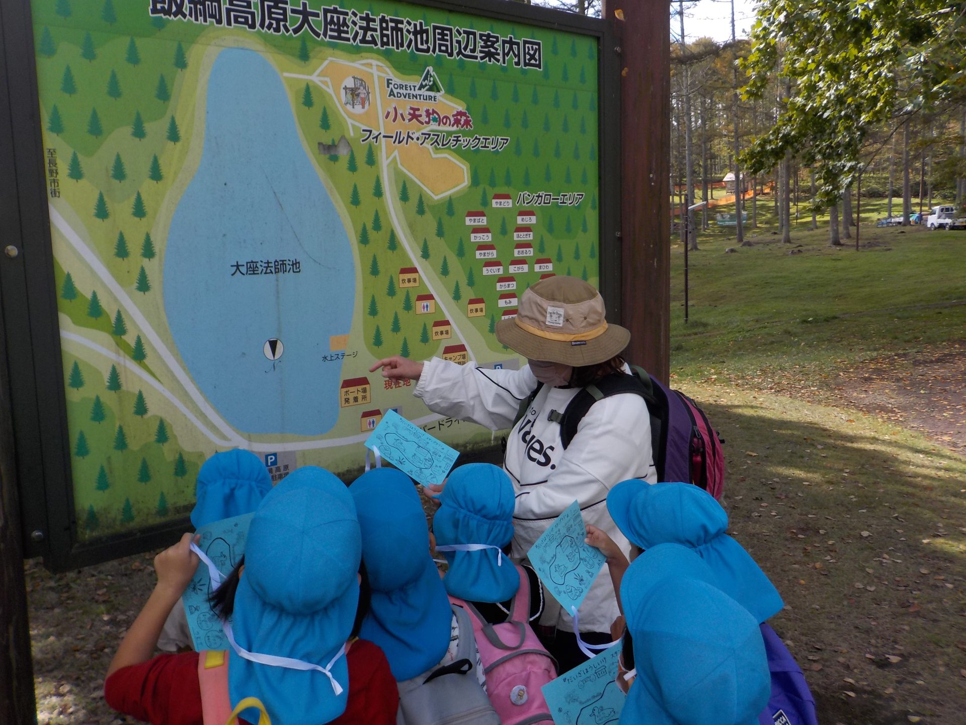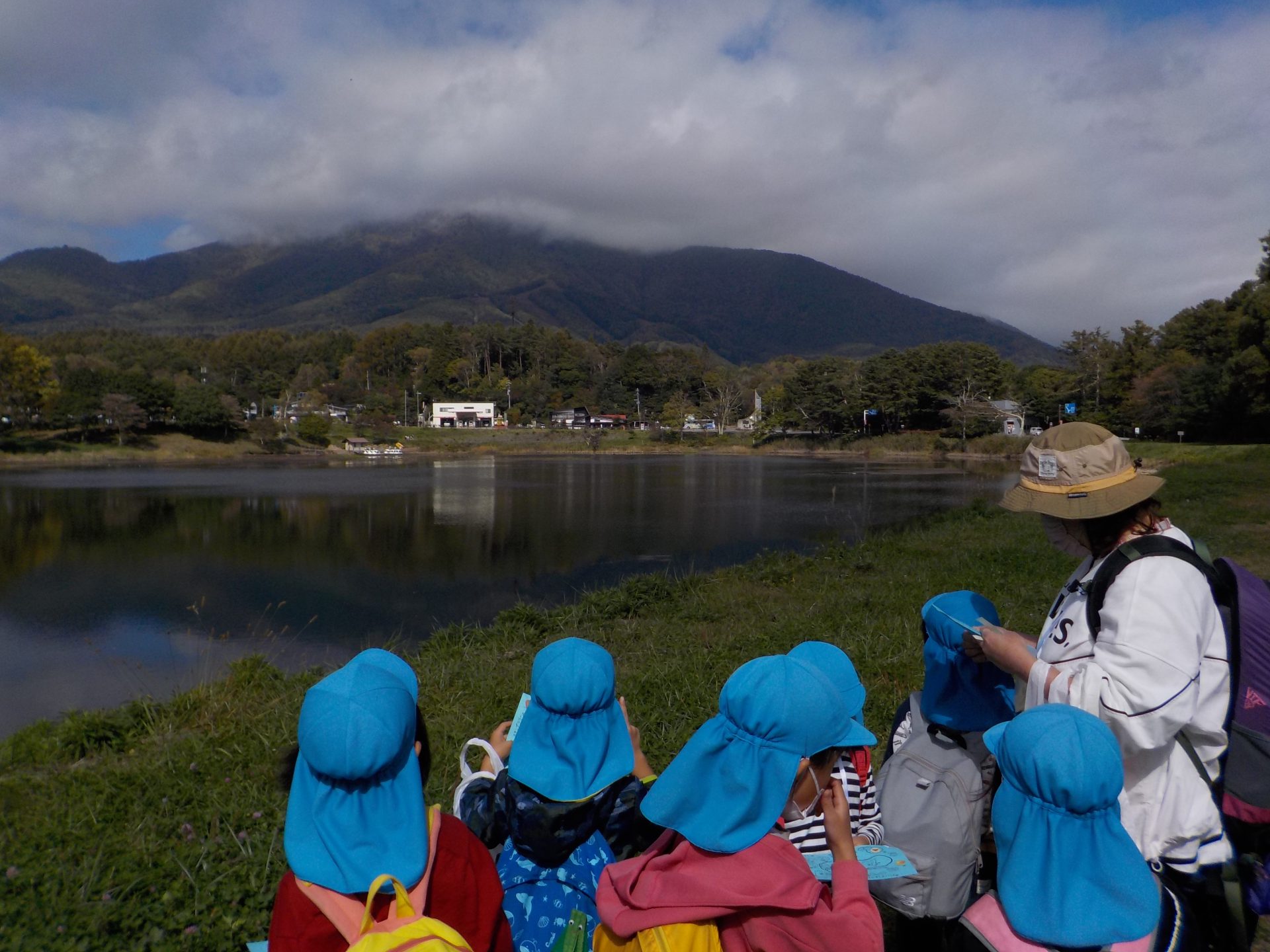 バスに乗って、大座法師池に遠足にきました。