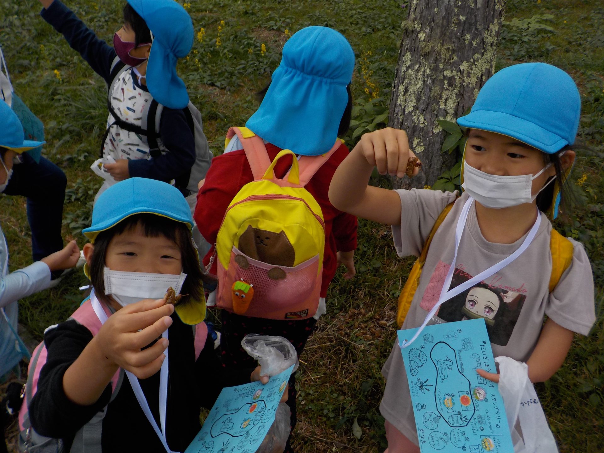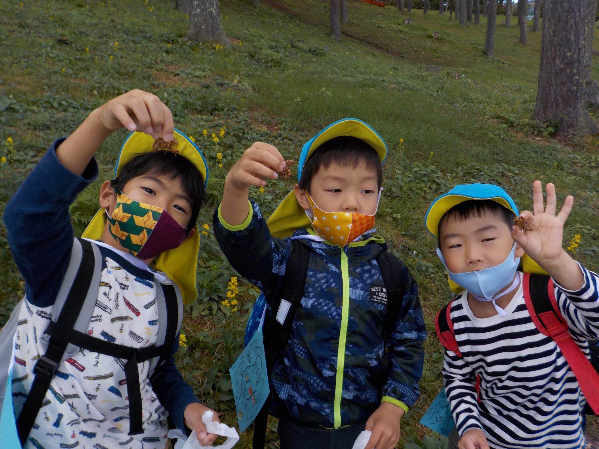 なぜか、一か所に大量のセミの抜け殻を発見した年長さん。