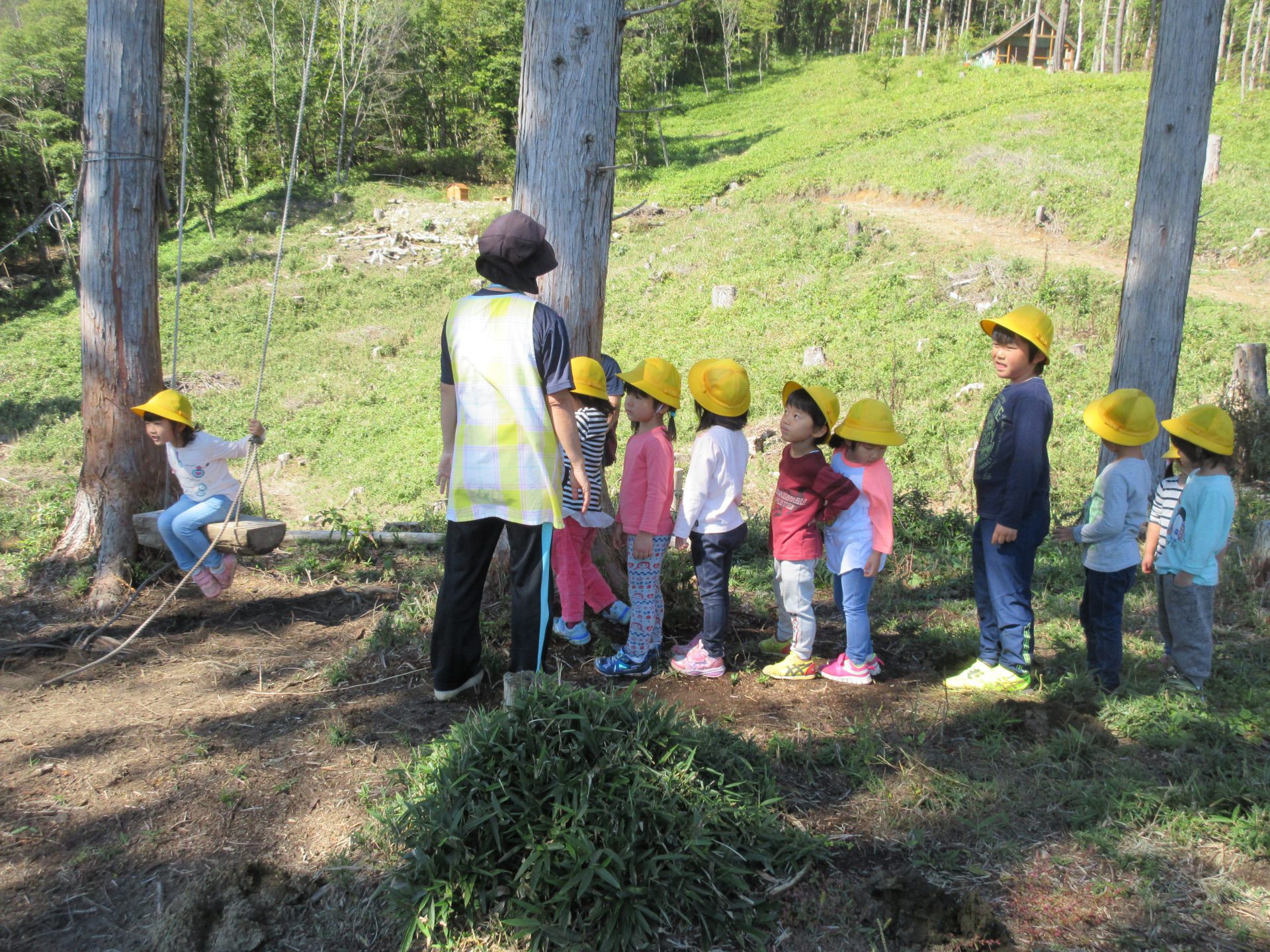 夏の川遊びに続いてのネバーランド。今回はネバーランドにある裏山、通称ハッピーマウンテン(所有者の方の名前にちなんで呼ばれています)に出かけました。昨年も園行事で来ていますが、今回は牛との触れ合いと手づくりブランコを目的に出かけました。