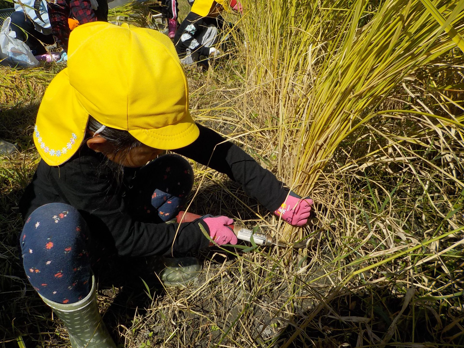 1時間ほどで保育園で食べる量の稲を刈ることができました。