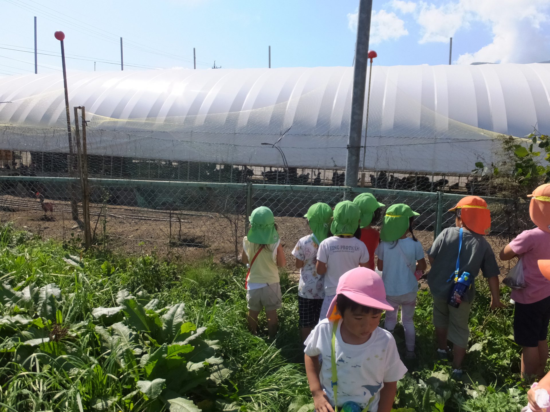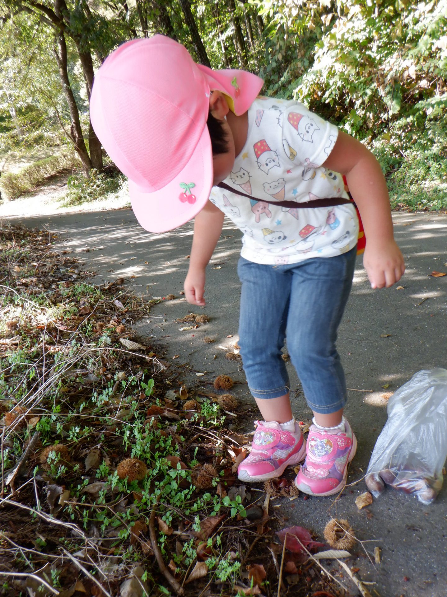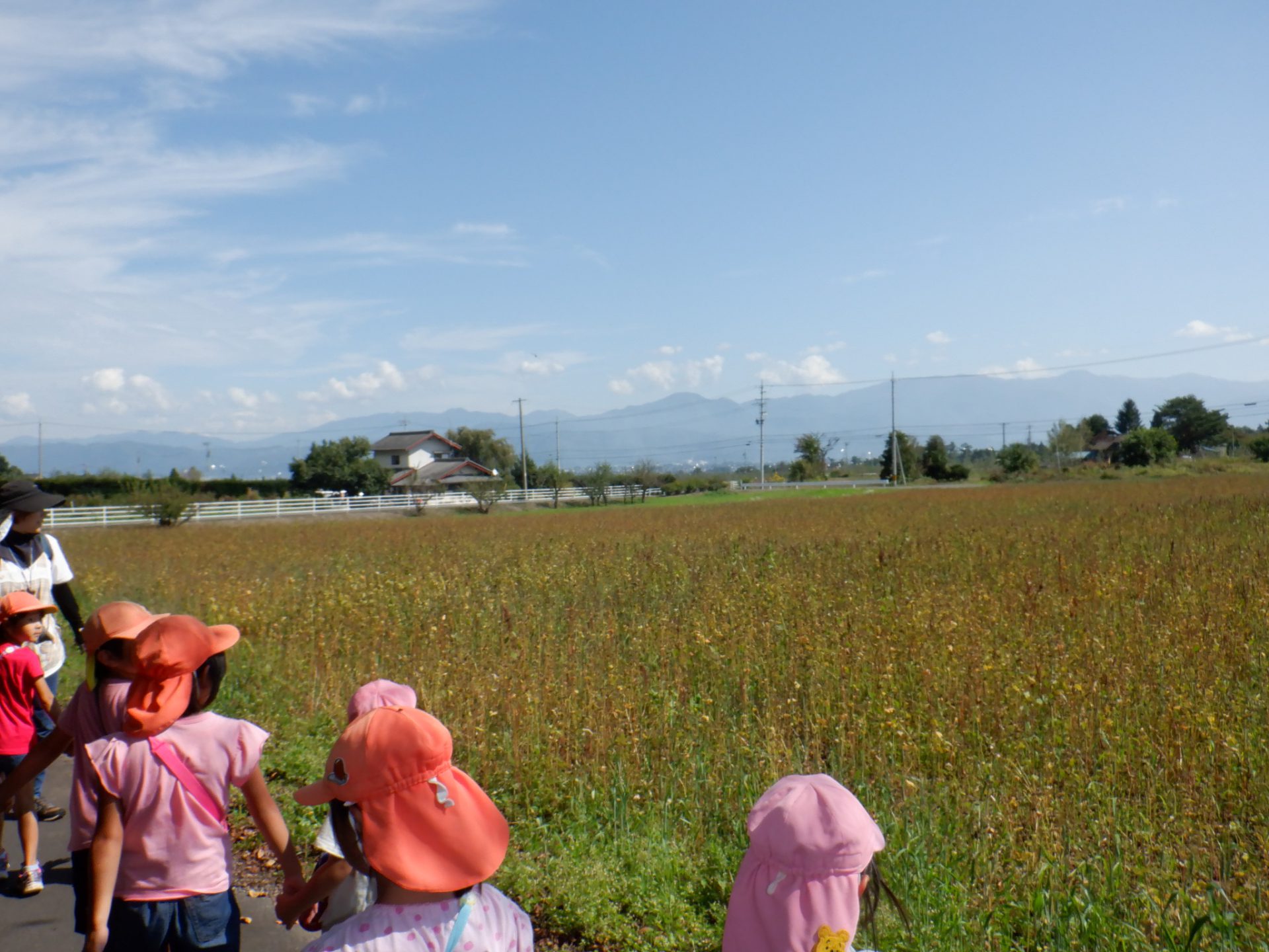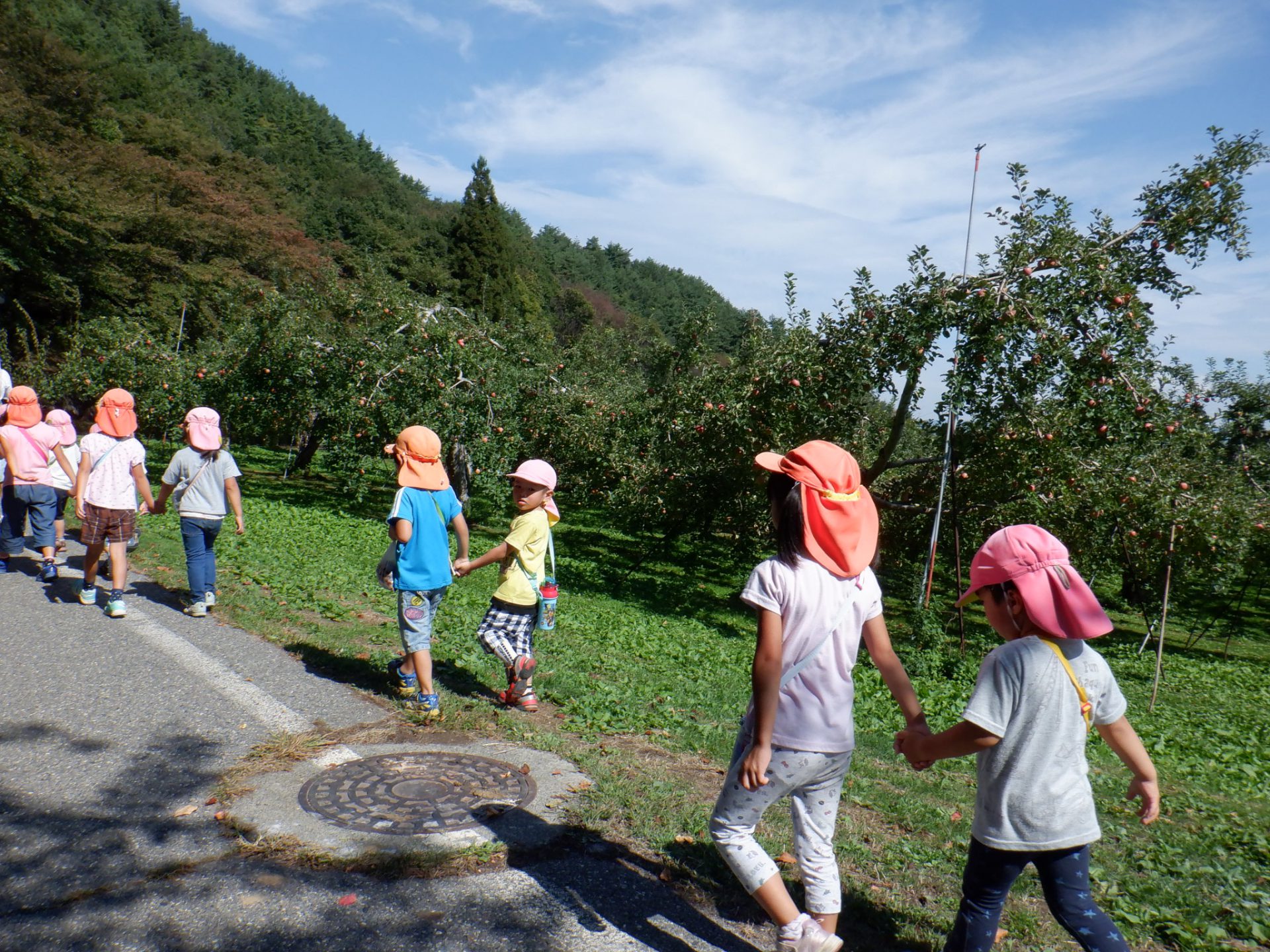 「動物園へ行こう」とういう目的でしたが、途中栗が落ちているところで立ち止まり栗を拾ったり、まわりの木々を見たり自然に触れ、ゆっくり歩くことでいろいろな発見、異年齢の関わり、互いを意識しようとする姿が見られ、楽しい時間となりました。