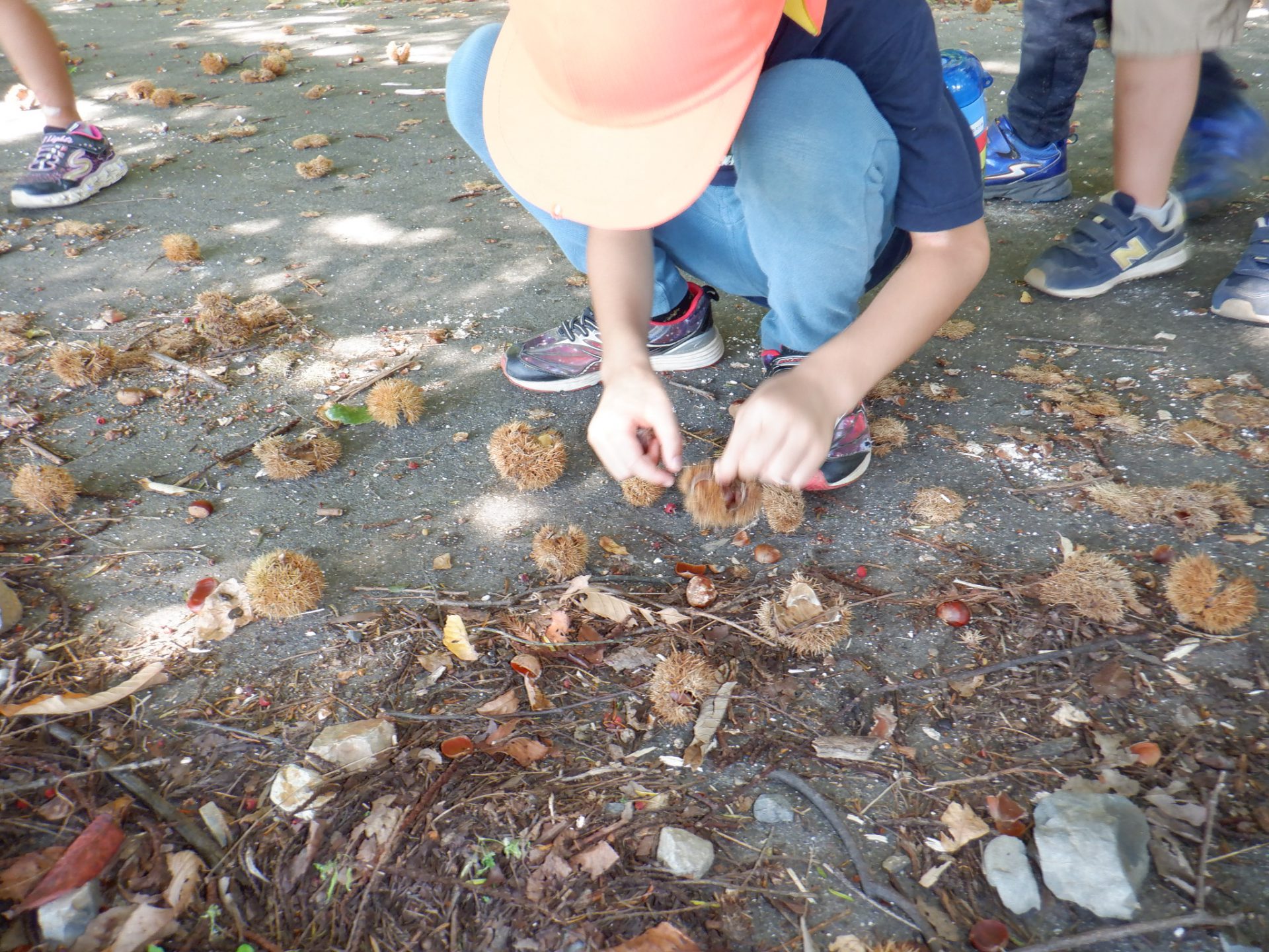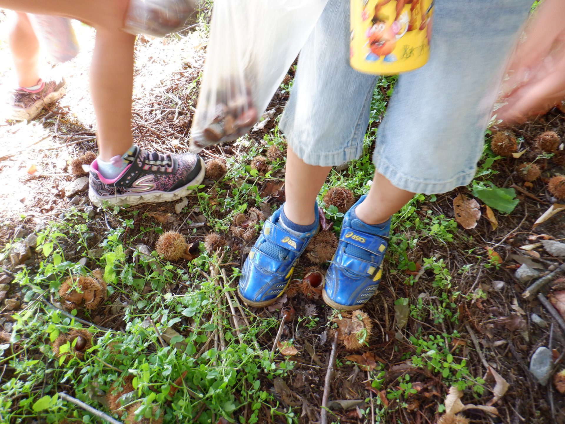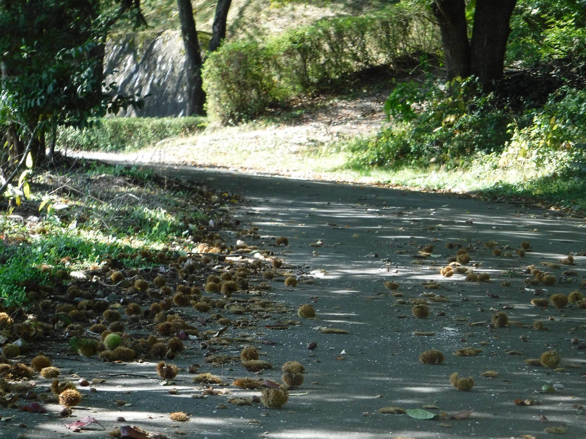 しばらくこの山道を自由に歩きながら、栗拾いをしました。