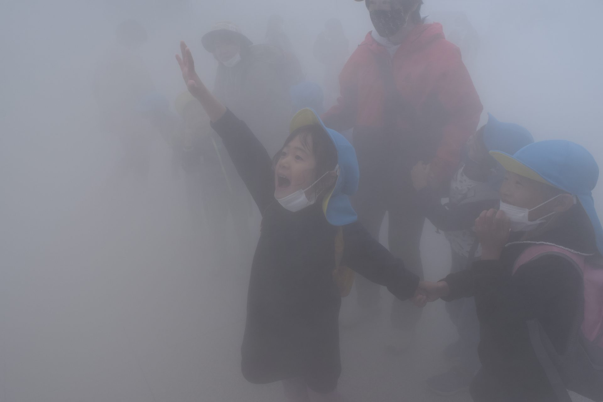 霧が自分たちに到達する前は、子ども達はドキドキ