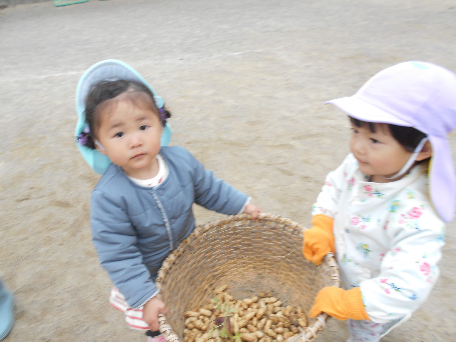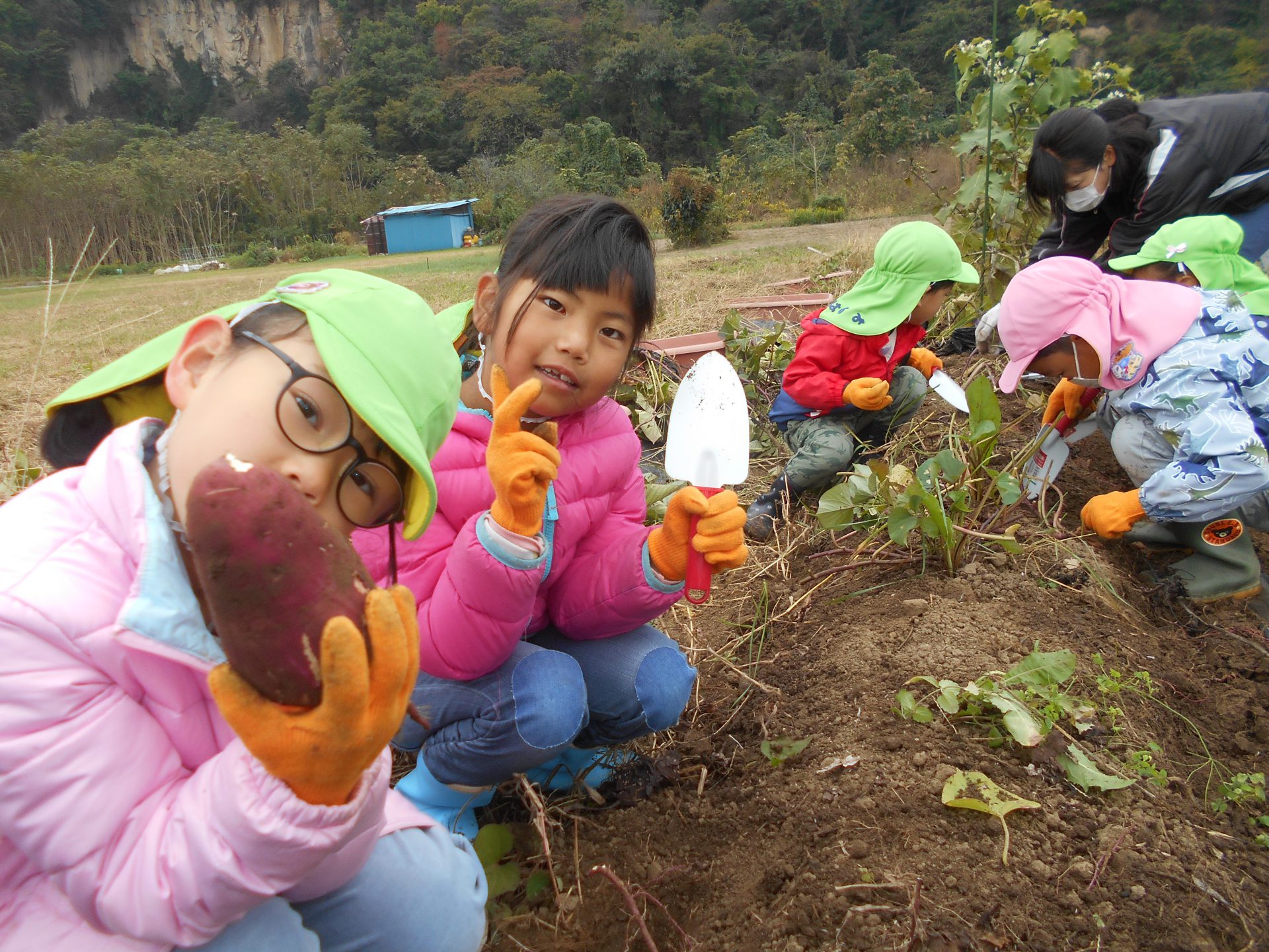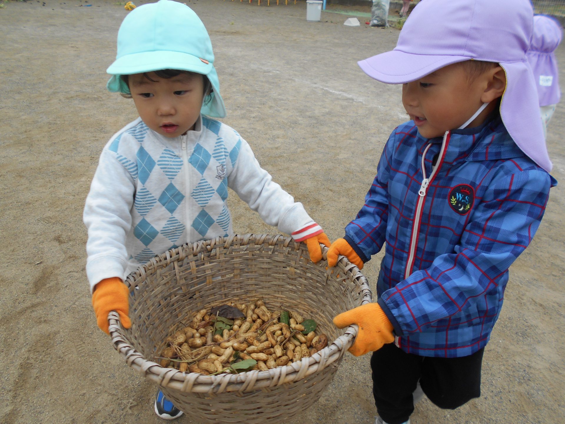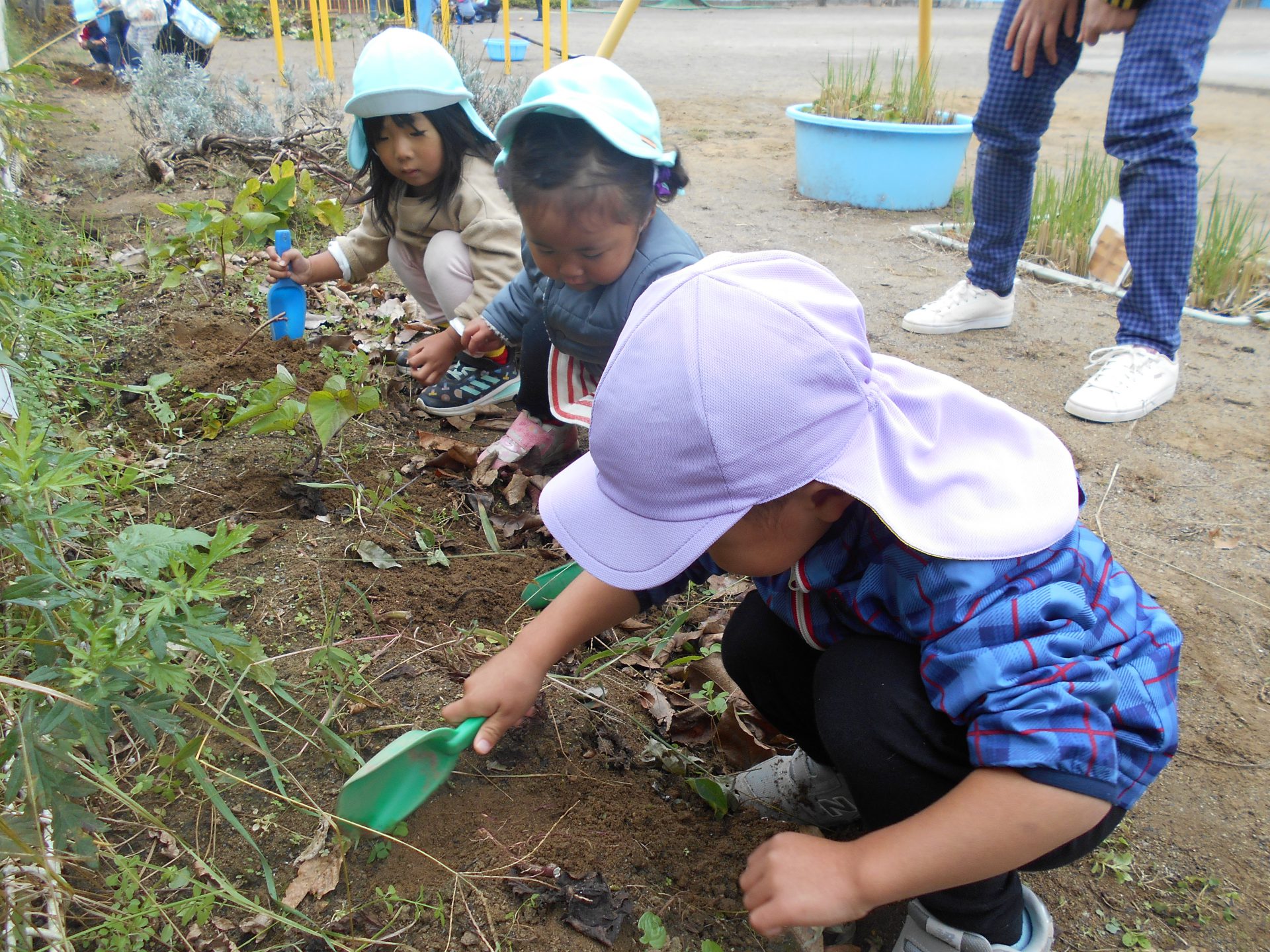 また、年上児の姿を見て年下児も”やってみたい!”と挑戦したり、さりげなく手伝いに来る年上児がいたりと、異年齢での素敵な関わりの機会もでき良かったです。学年別でなく、園全体で芋堀が楽しめ様々な経験ができ良かったなと思います。